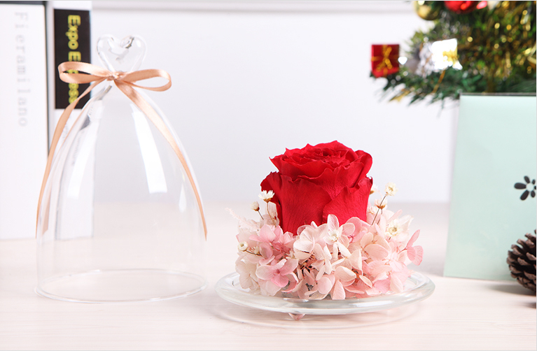厄瓜多尔进口永生红玫1朵,搭配双色永生绣球,白色小星花(所有材料均为永生花花材,可存放2~3年)
