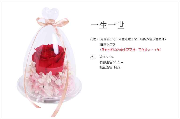 [7天酒店专享优惠] 厄瓜多尔进口永生红玫1朵,双色永生绣球