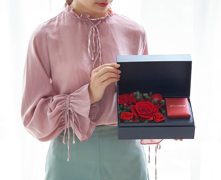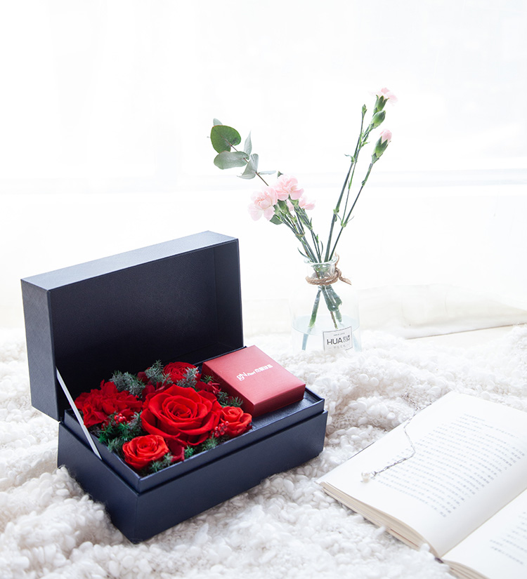 [珍珠项链/珍珠耳钉可选] 厄瓜多尔进口永生红玫1朵、红色小玫瑰2朵、进口红色康乃馨1朵