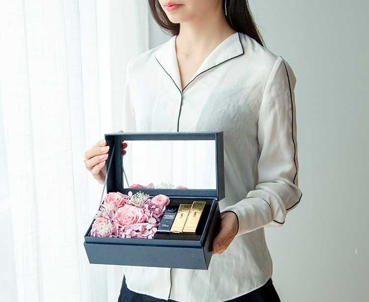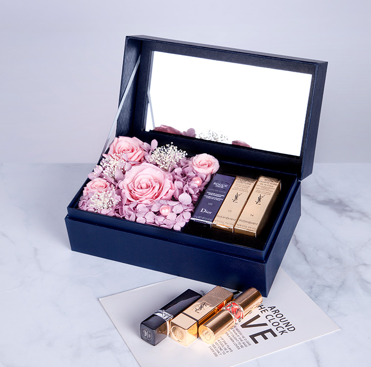 永生花搭配热卖款口红(DIOR#520、YSL#13、YSL#14口红,寓意:5201314),专为心爱的她准备的巨大惊喜!特别提示:口红属于膏状物体,不支持空运,由顺丰陆运寄出