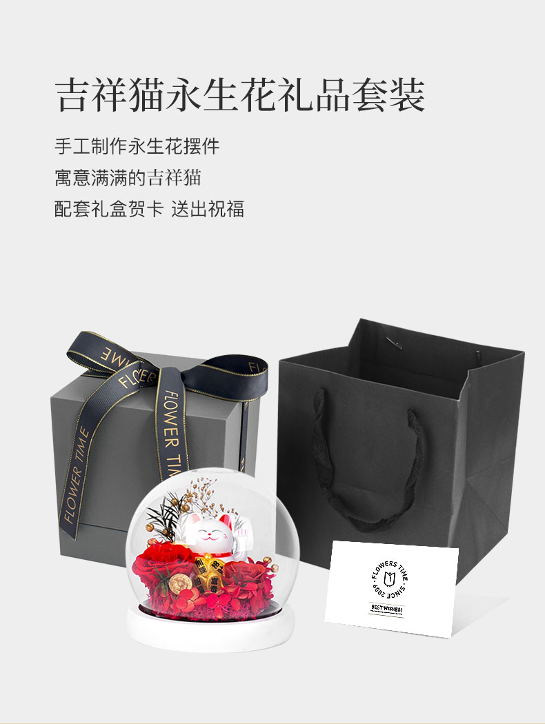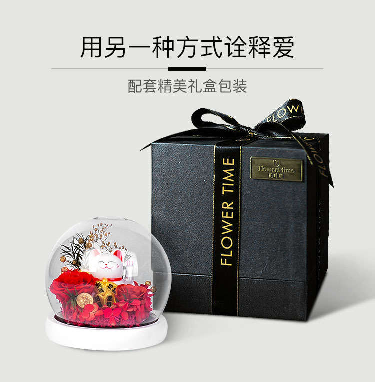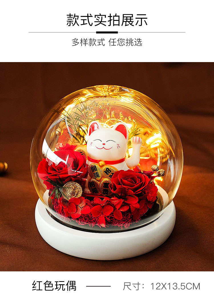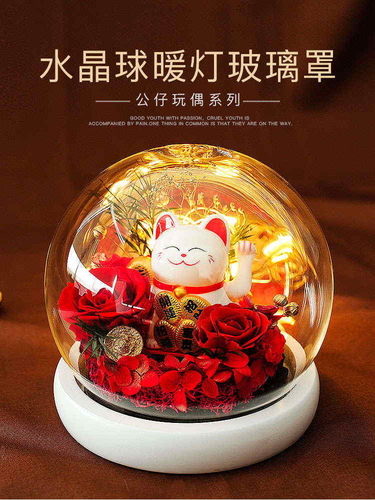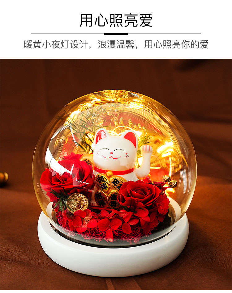 首页 > 礼品 >永生花 > 招财猫永生花水晶球玻璃罩小夜灯