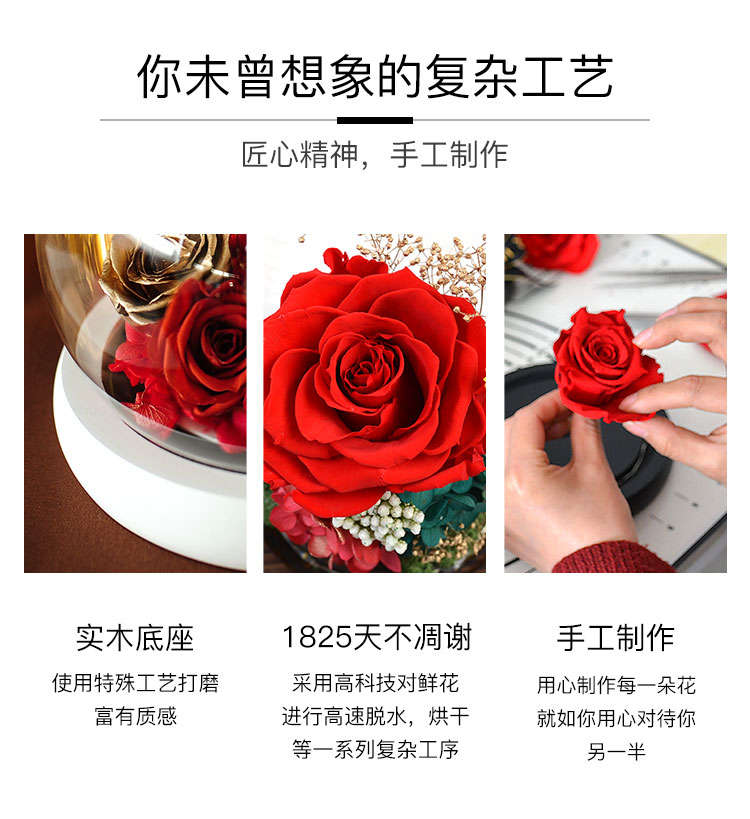 黑/灰色礼盒随机发货,精致永生花礼盒(因发空运无法配备电池,需自行准备三节7号电池)