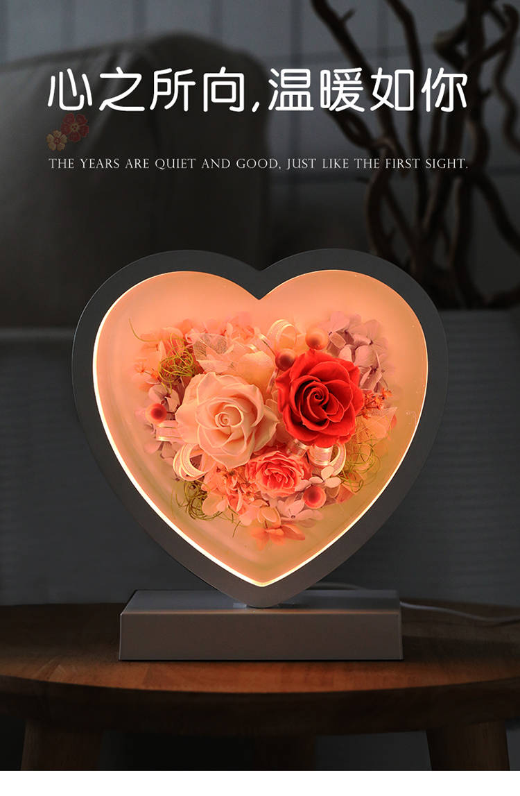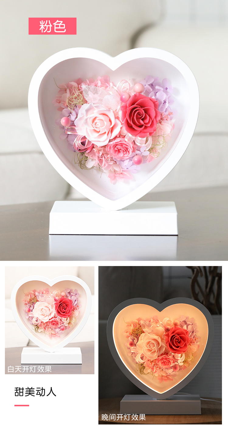 [创意新品 心形永生花台灯] 浪漫心形台灯,可调光