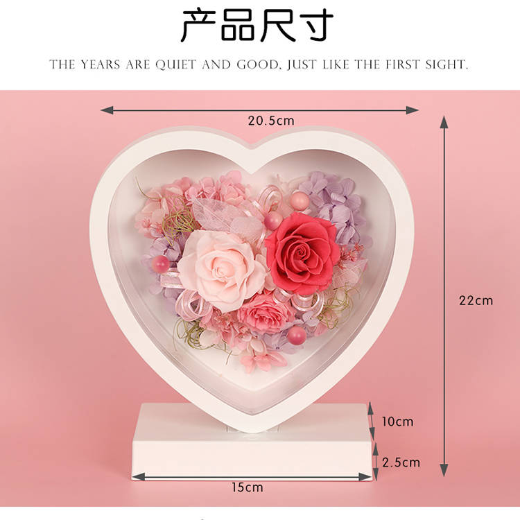 首页 > 礼品 >永生花 > 心心相印心形永生花台灯/粉色
