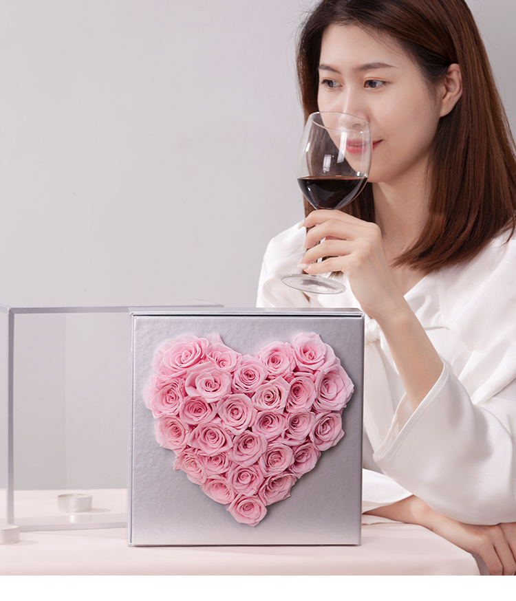 甄选优质永生粉玫瑰26-28朵(玫瑰为天然生长,大小略有差异,所以玫瑰朵数会略有差异),经花艺师手工设计而成,适合生日、周年纪念日等特别的日子送女朋友、妻子之优选!