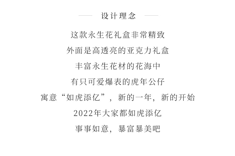 首页 > 礼品 >永生花 > 2022虎年限定公仔永生花亚克力礼盒
