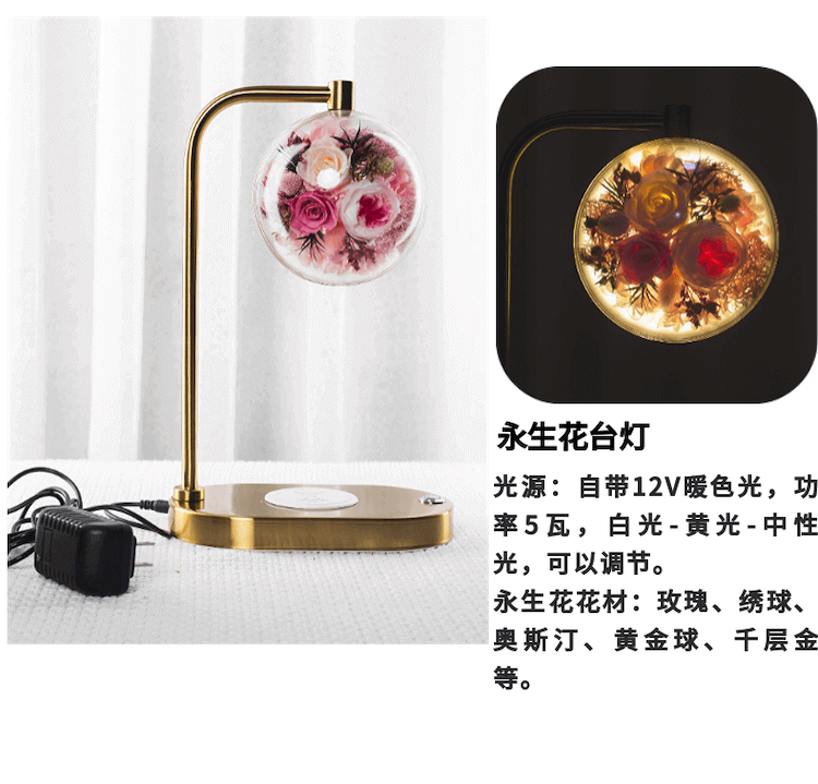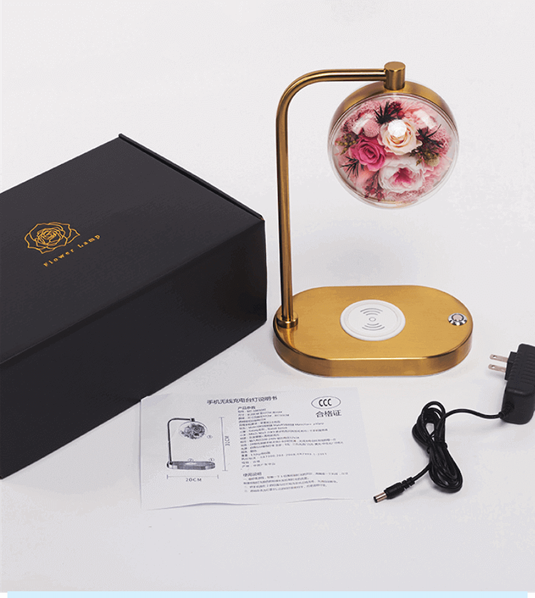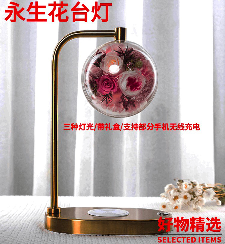 永生花充电台灯无线手机充电/粉色