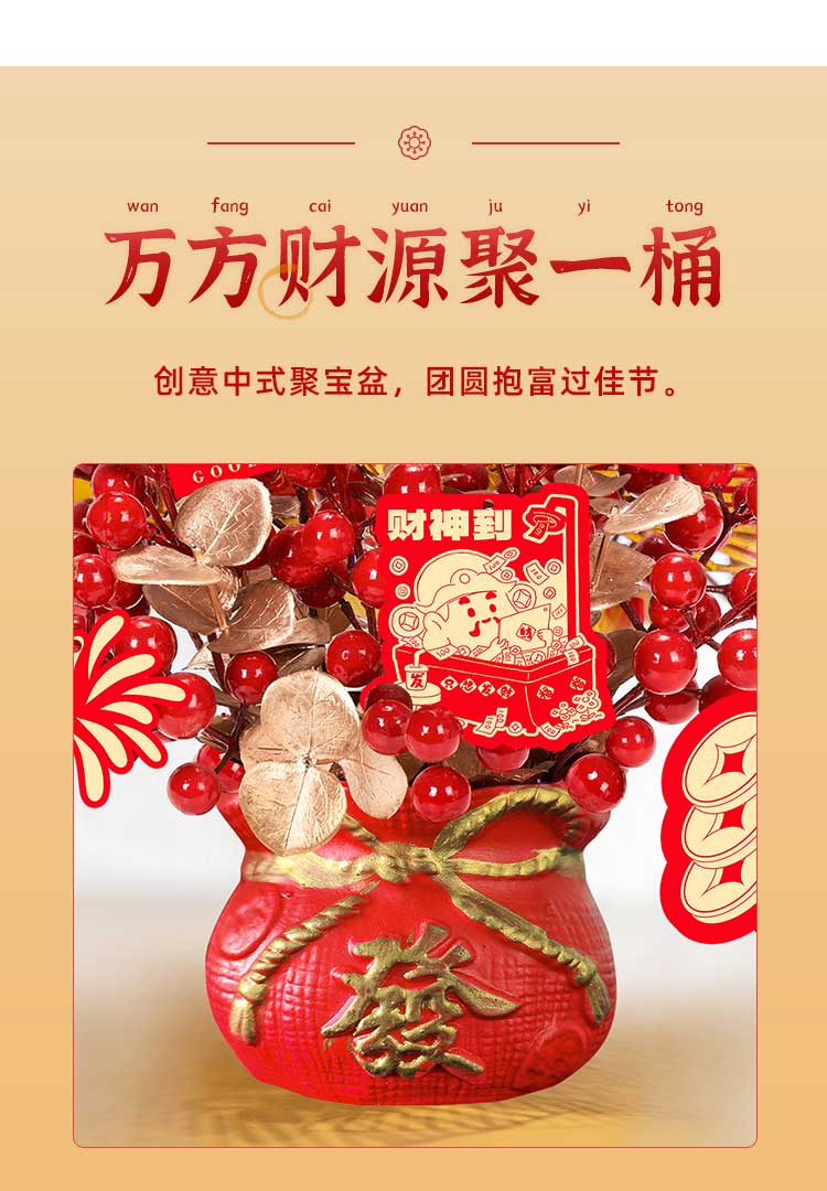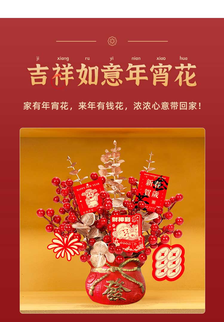 立减8元品名:年宵花2盆组合仿真钱袋花盆/贺岁款+圆环款