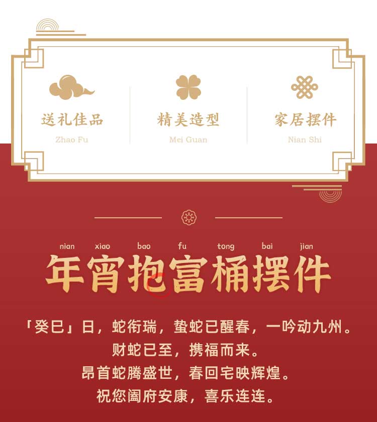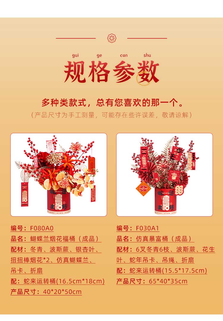 首页 > 礼品 >永生花 > 蛇年年宵花仿真福桶-仿真花抱富桶