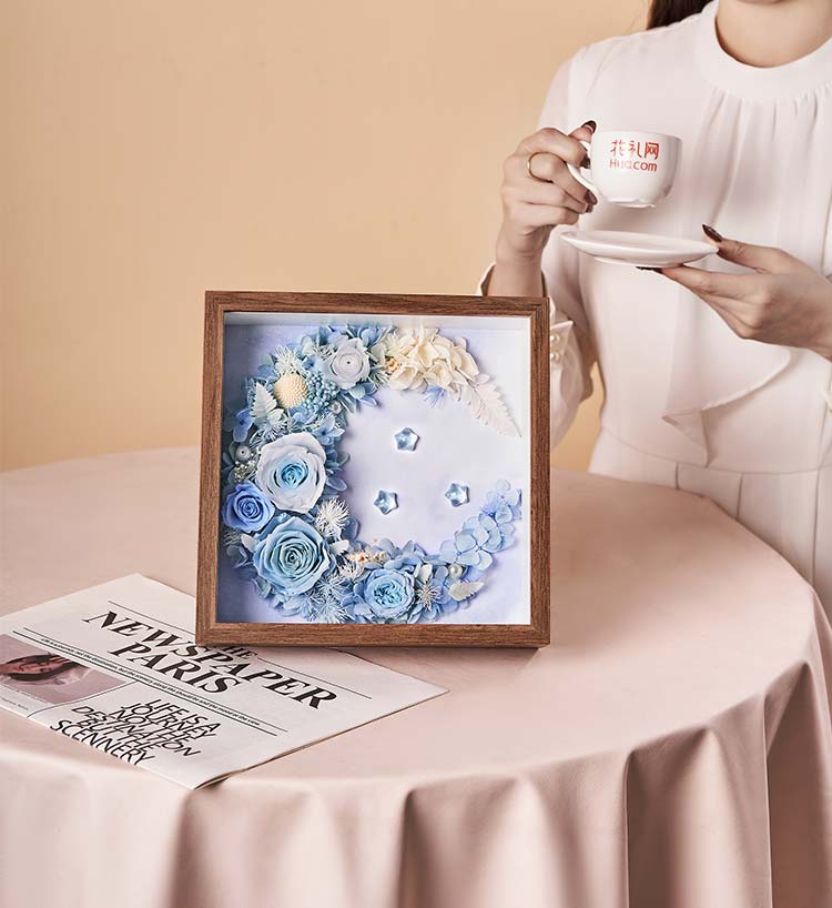 首页 > 礼品 >永生花 > 月亮代表我的心永生花相框/天空蓝