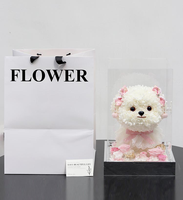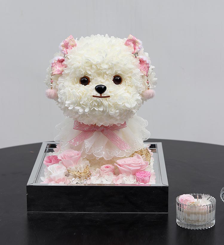 首页 > 礼品 >永生花 > 萌宠新中式小狗永生花摆件/加大款