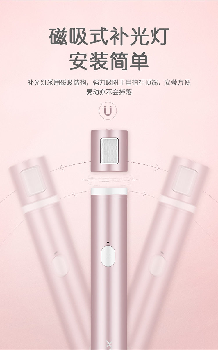 迷你磁吸式补光灯铝合金自拍杆 苹果安卓手机通用