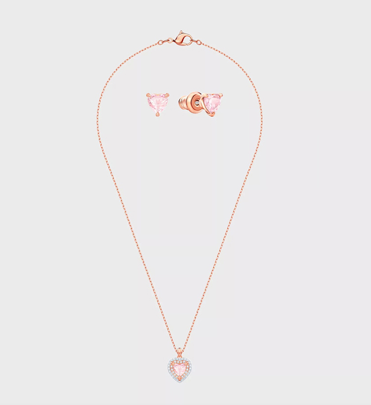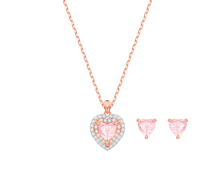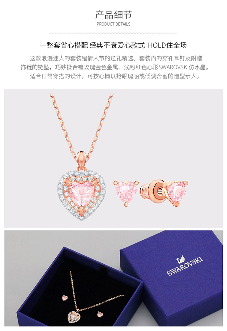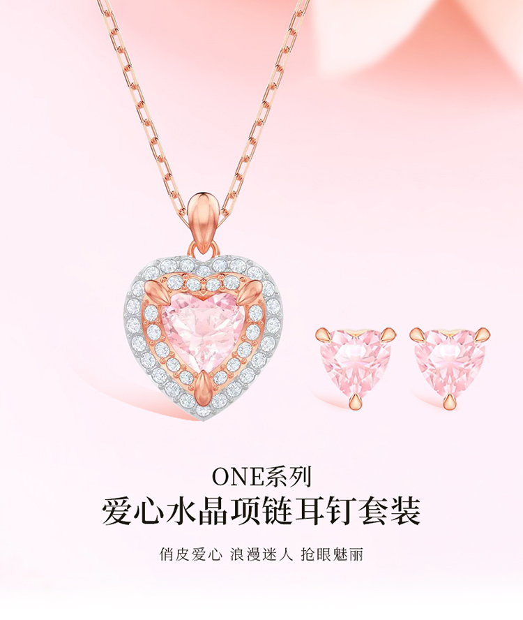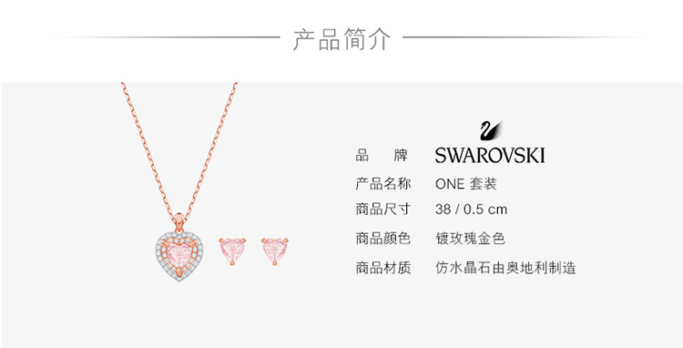 商品名称:施华洛世奇 ONE 粉嫩爱心 浪漫迷人 时尚 女耳钉项链套装 镀玫瑰金色