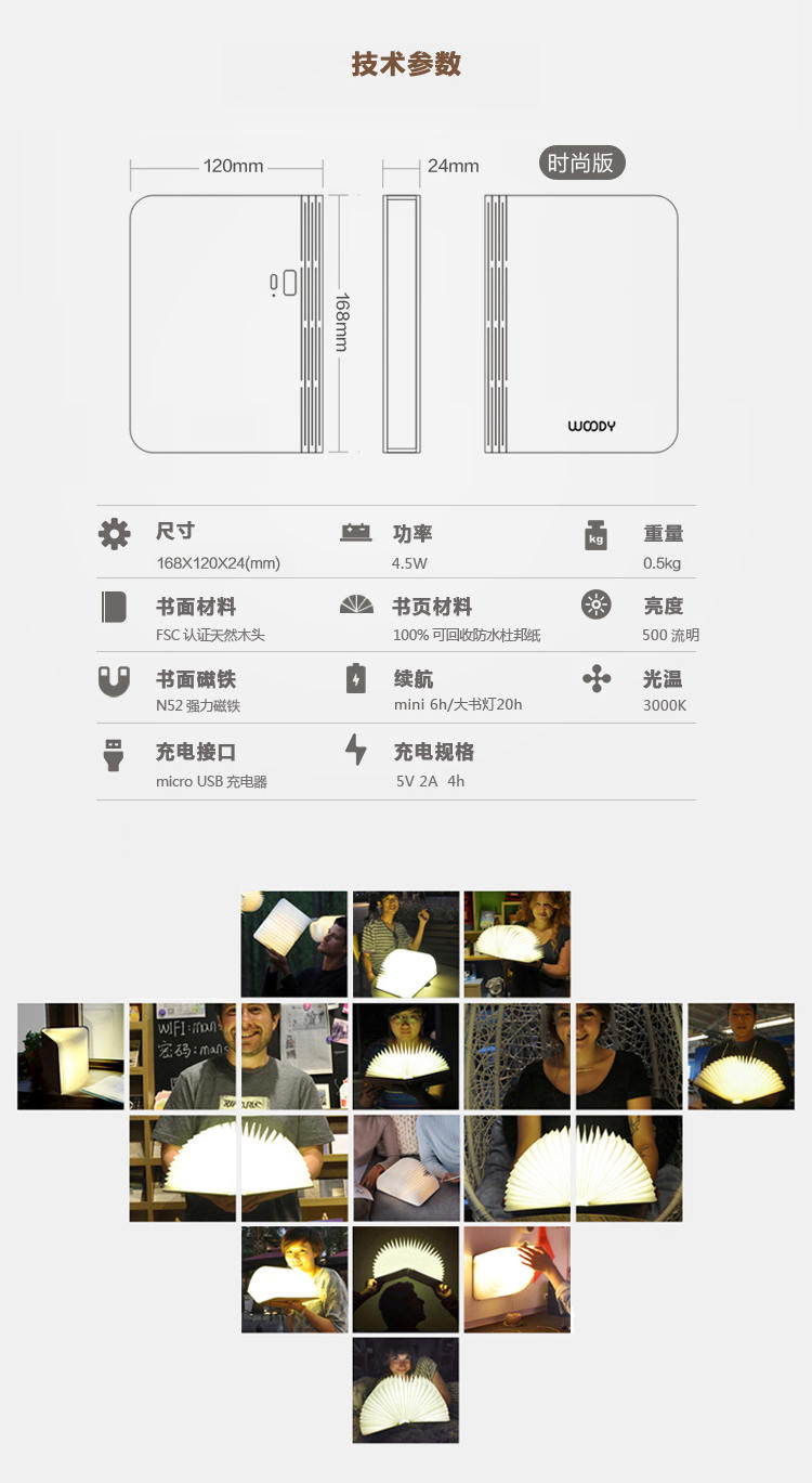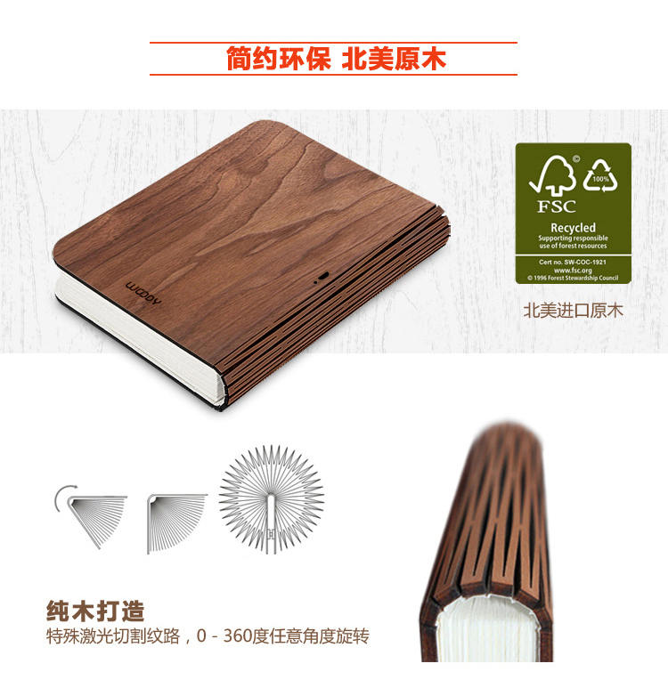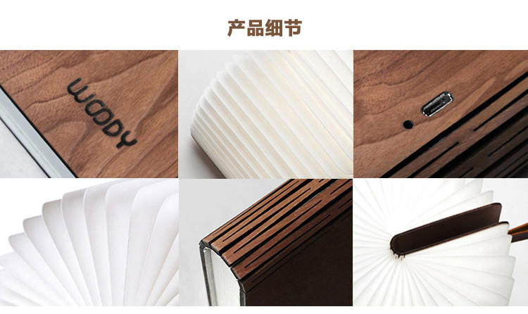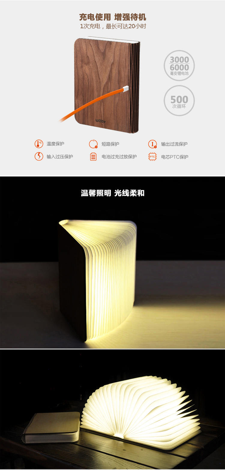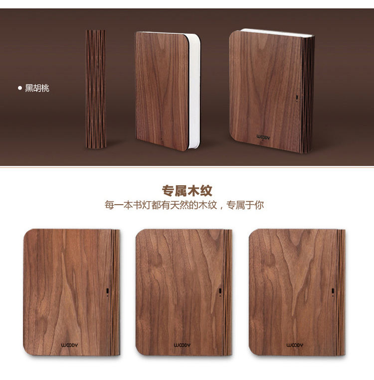 woody书灯木质led折叠usb书本灯-时尚版(黑胡桃)