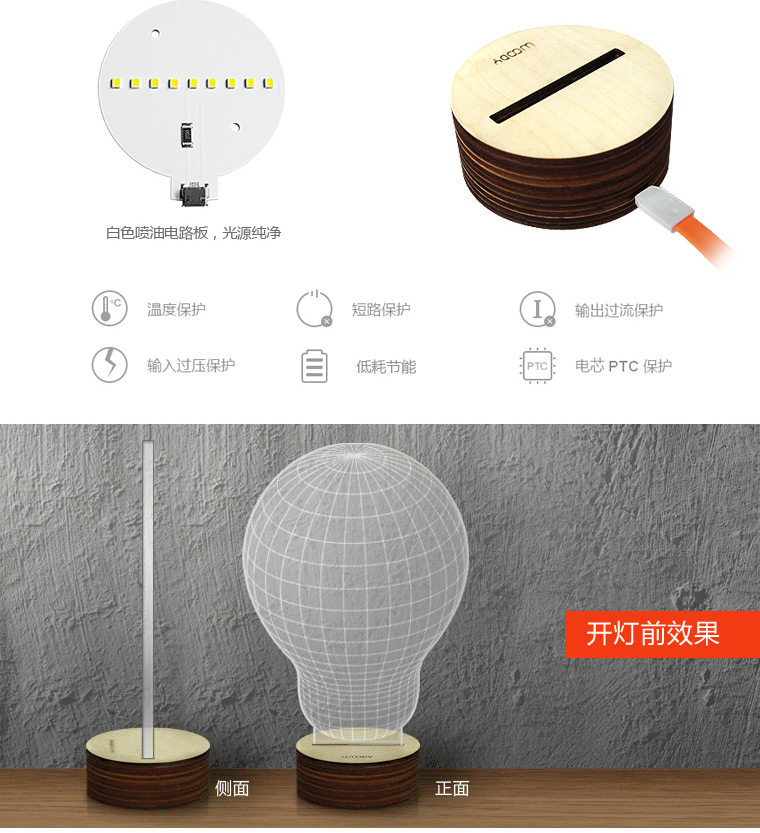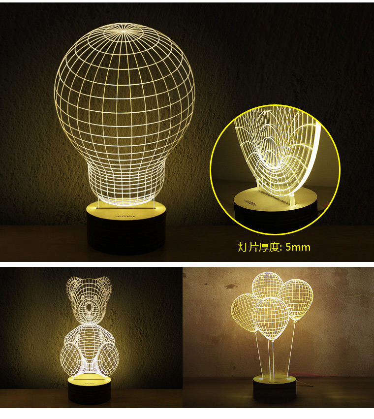 [7天酒店专享优惠] 木质底座3D灯,LED创意礼品家居摆件,送礼佳品