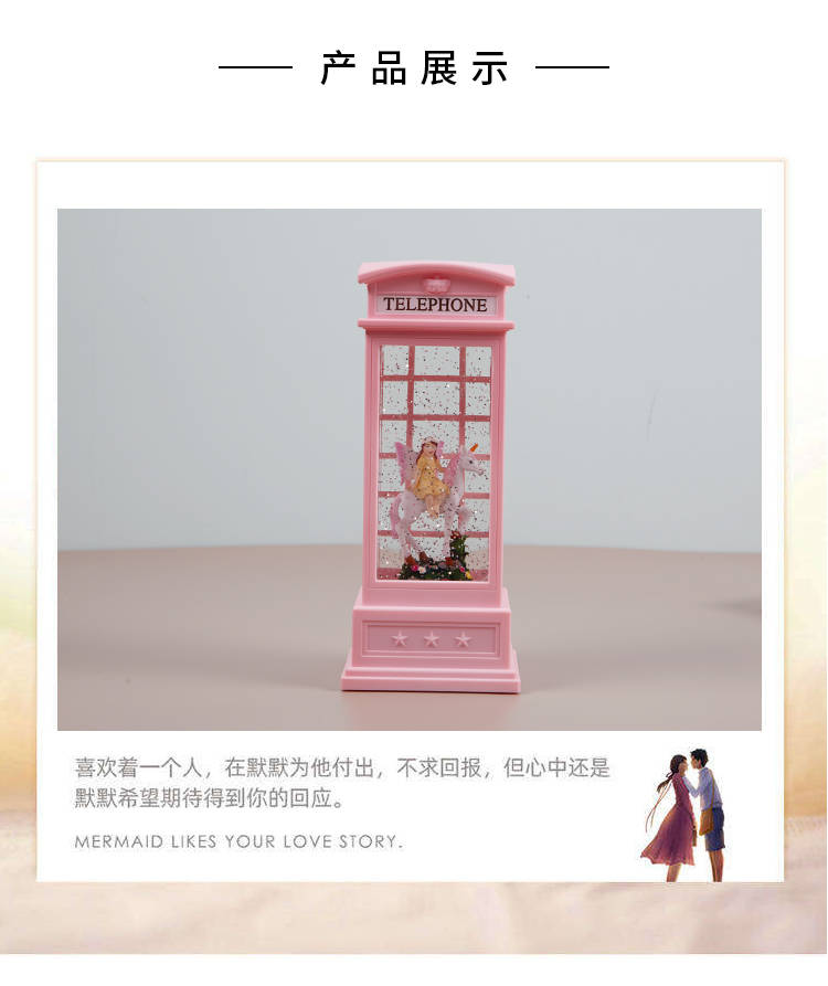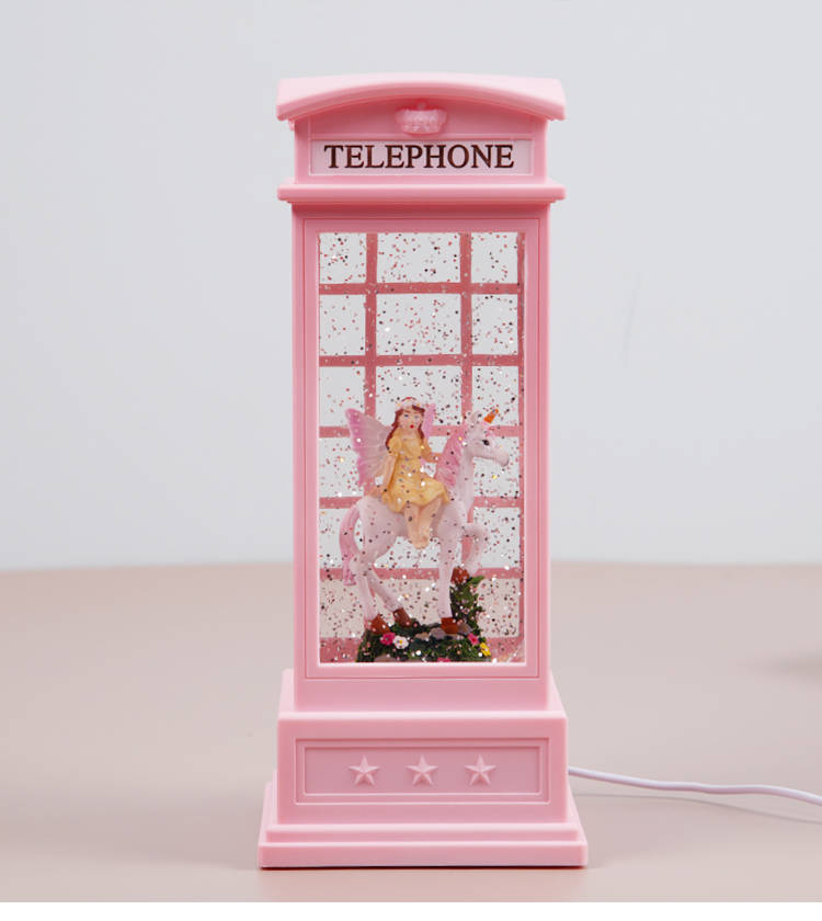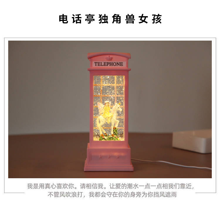 维多利水晶灯电话亭女孩独角兽/粉色(音乐小夜灯)