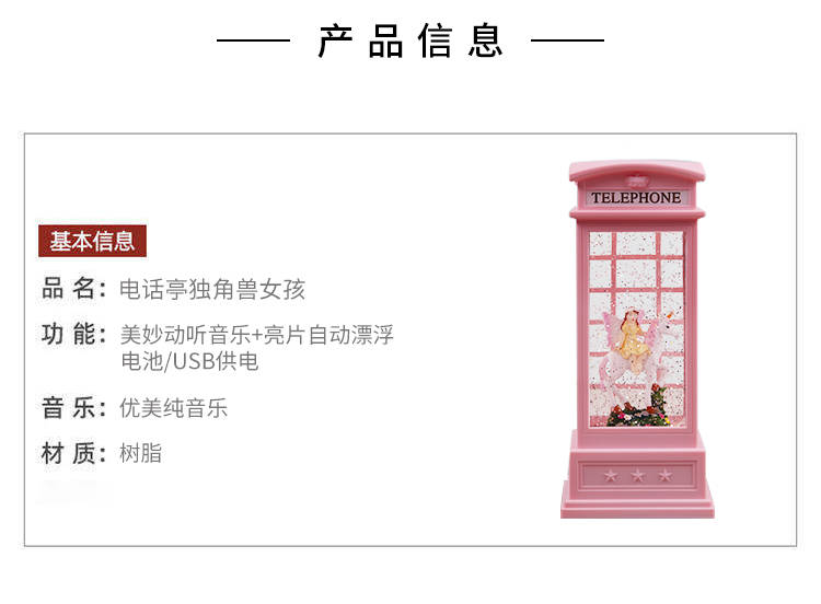 首页 > 礼品 >创意礼品 > 维多利水晶灯电话亭女孩独角兽/粉色(音乐小夜灯)