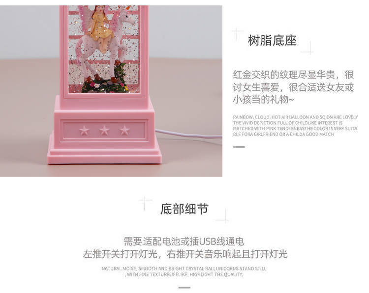 USB插口/电池槽、优美音乐、亮片自动漂浮、小夜灯