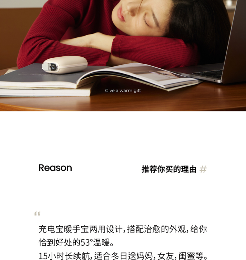 [智能数显 双效合一] 10000mAh充电宝+暖手宝;智能温控数显