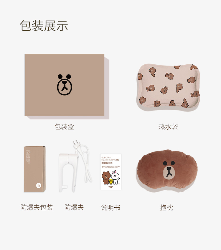 [充电十分钟 温暖一晚上] LINE FRIENDS抱枕充电暖水袋
