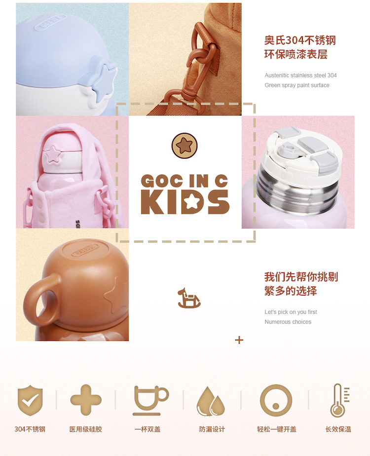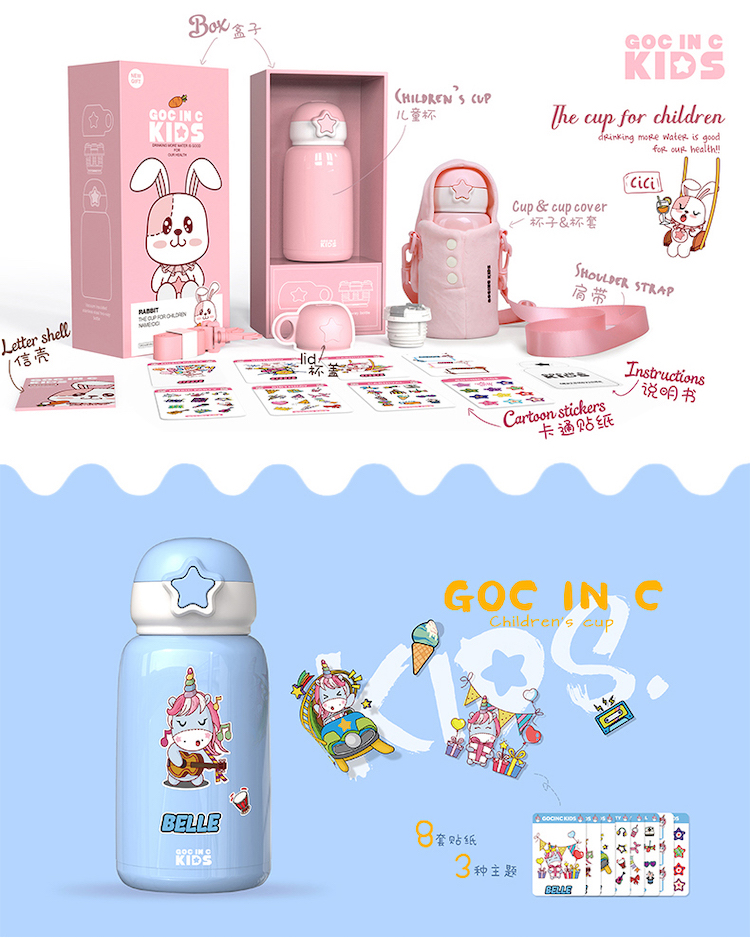 GOC IN C儿童咕噜兔子保温杯带吸管/粉色