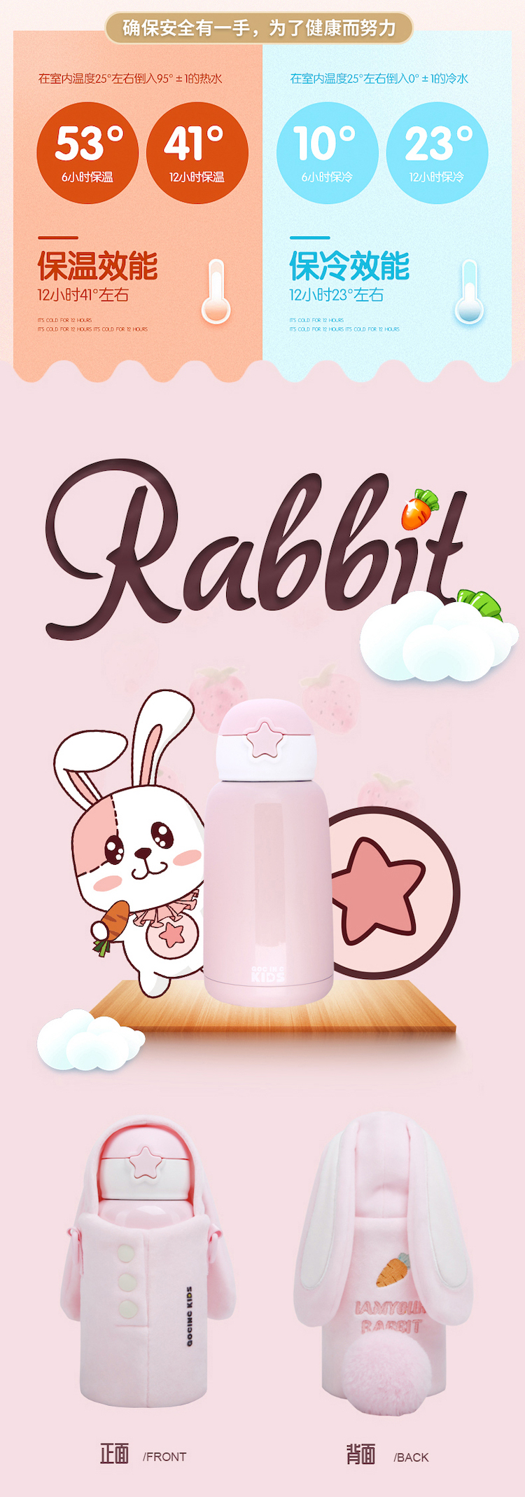 [带吸管两用 兔子保温杯] 儿童咕噜兔子保温杯