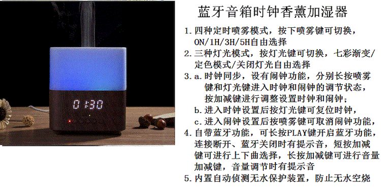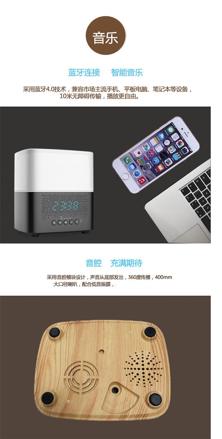 [蓝牙音箱带时钟香薰加湿器] 蓝牙音乐,带时钟显示香薰机加湿器