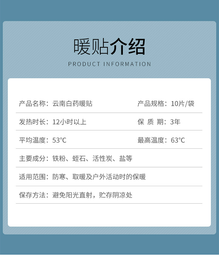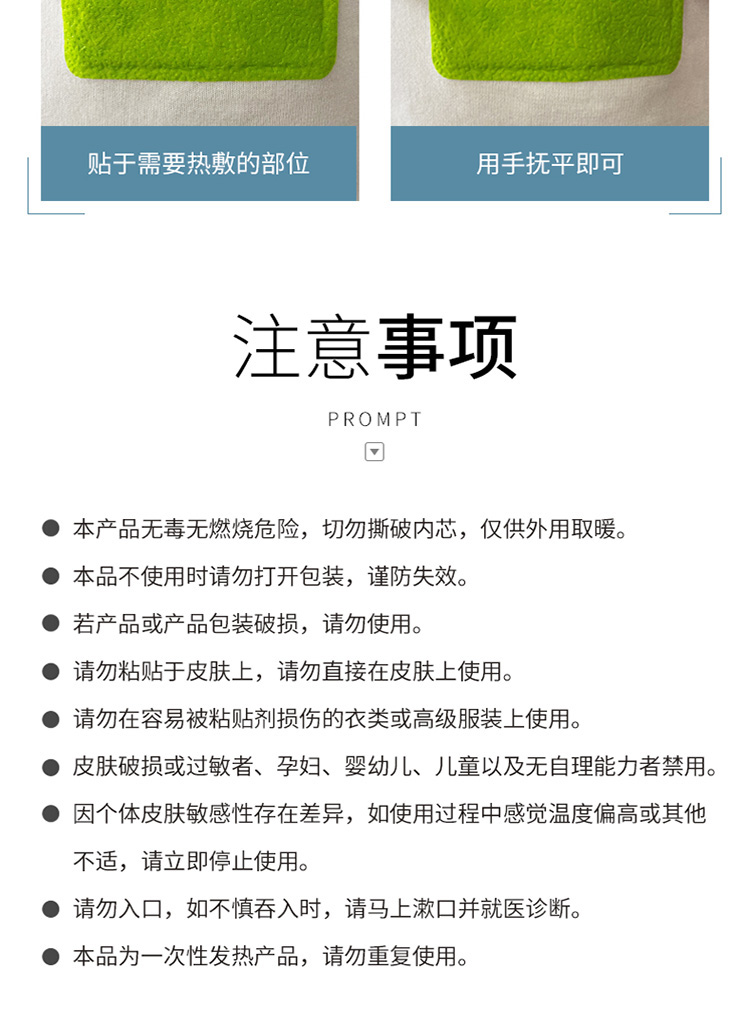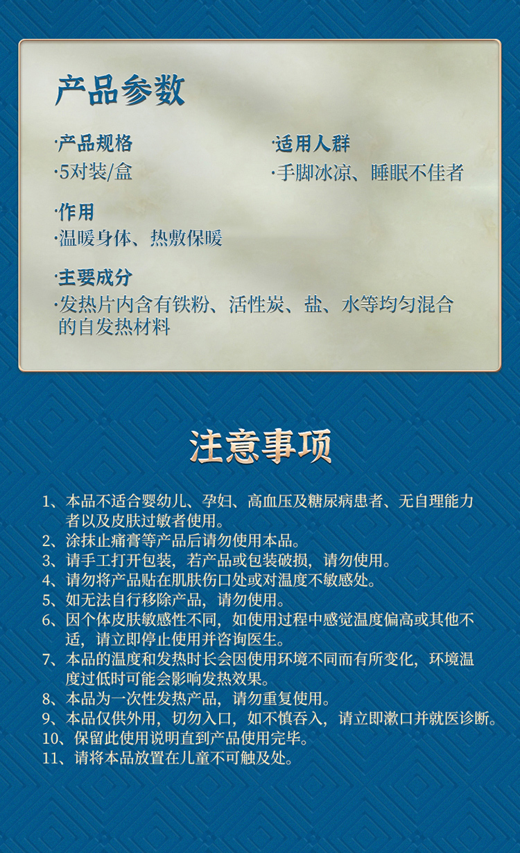 产品规格:10片/袋(暖身贴)5对/盒(暖足贴)