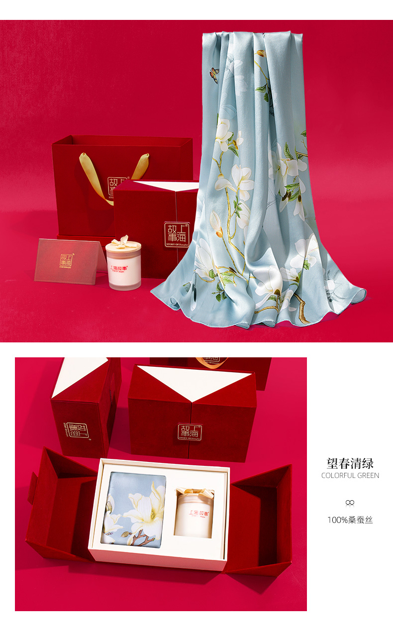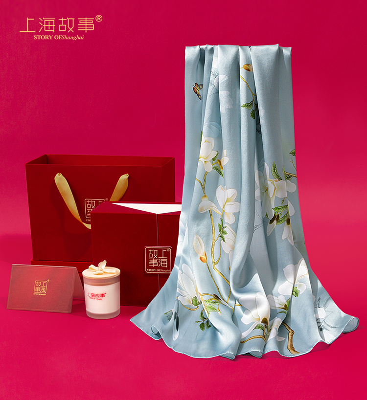 首页 > 礼品 >创意礼品 > 上海故事真丝围巾望春清绿+香薰礼盒