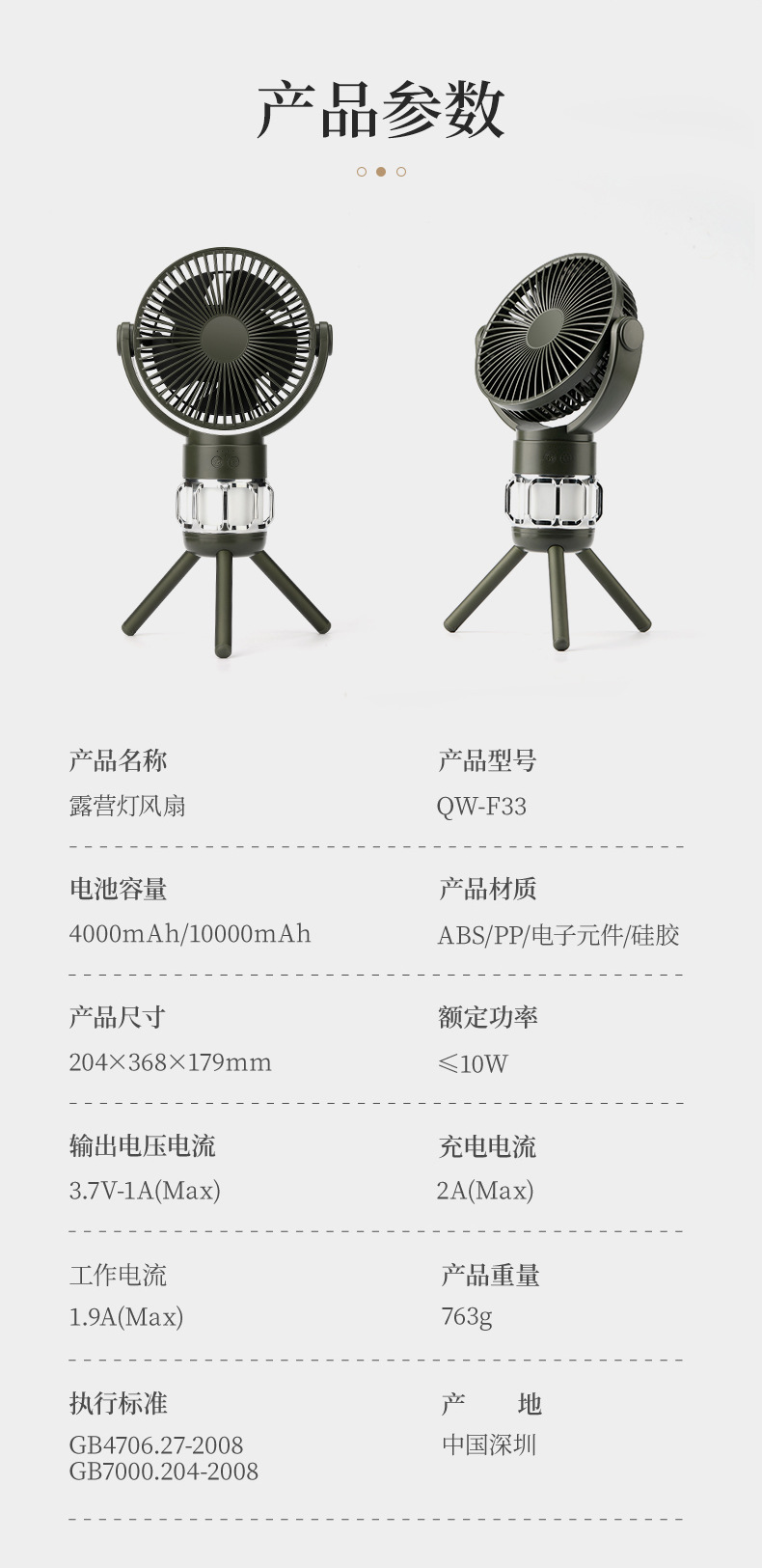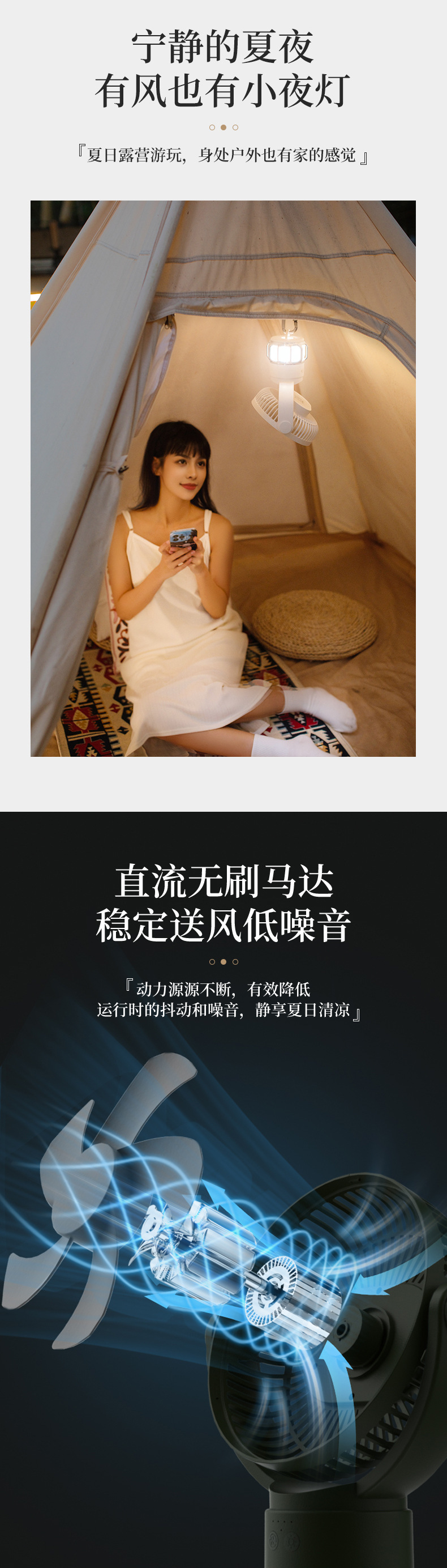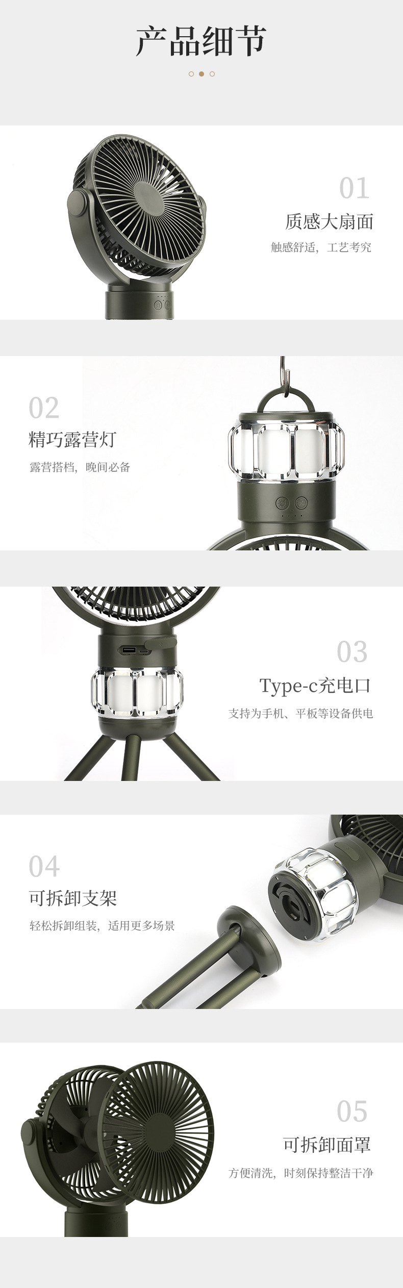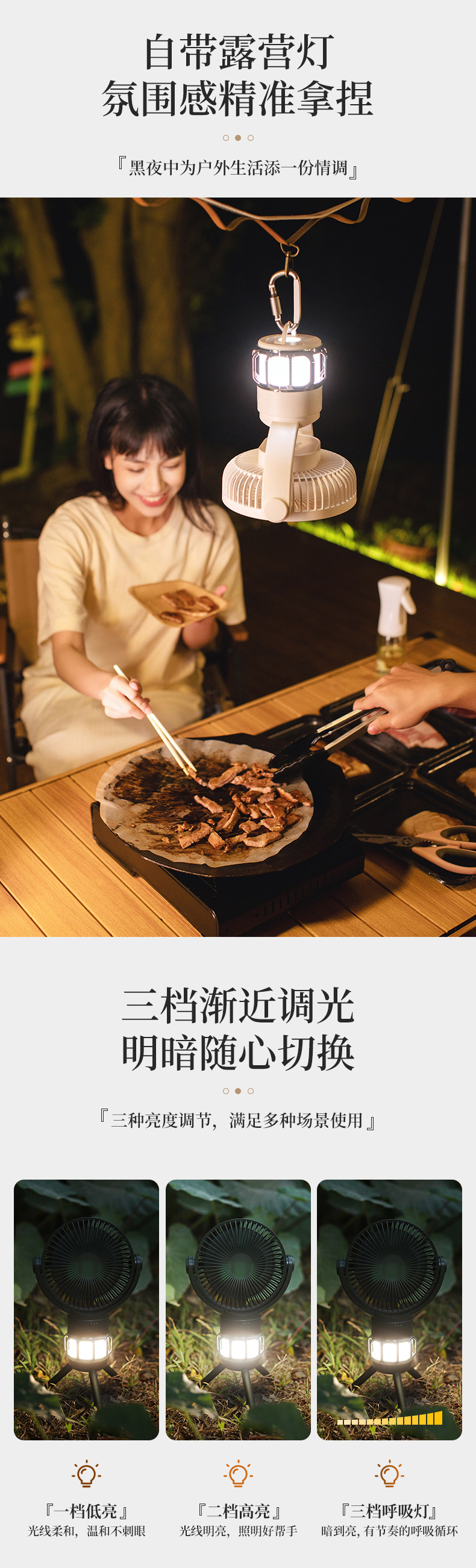 功能:自动摇头,露营灯,磁吸遥控,定时功能,可拆卸支架作吊扇,充电宝功能