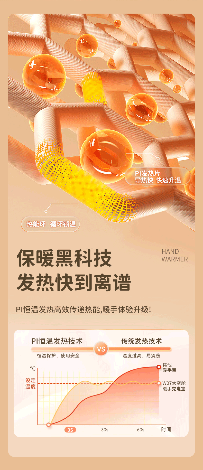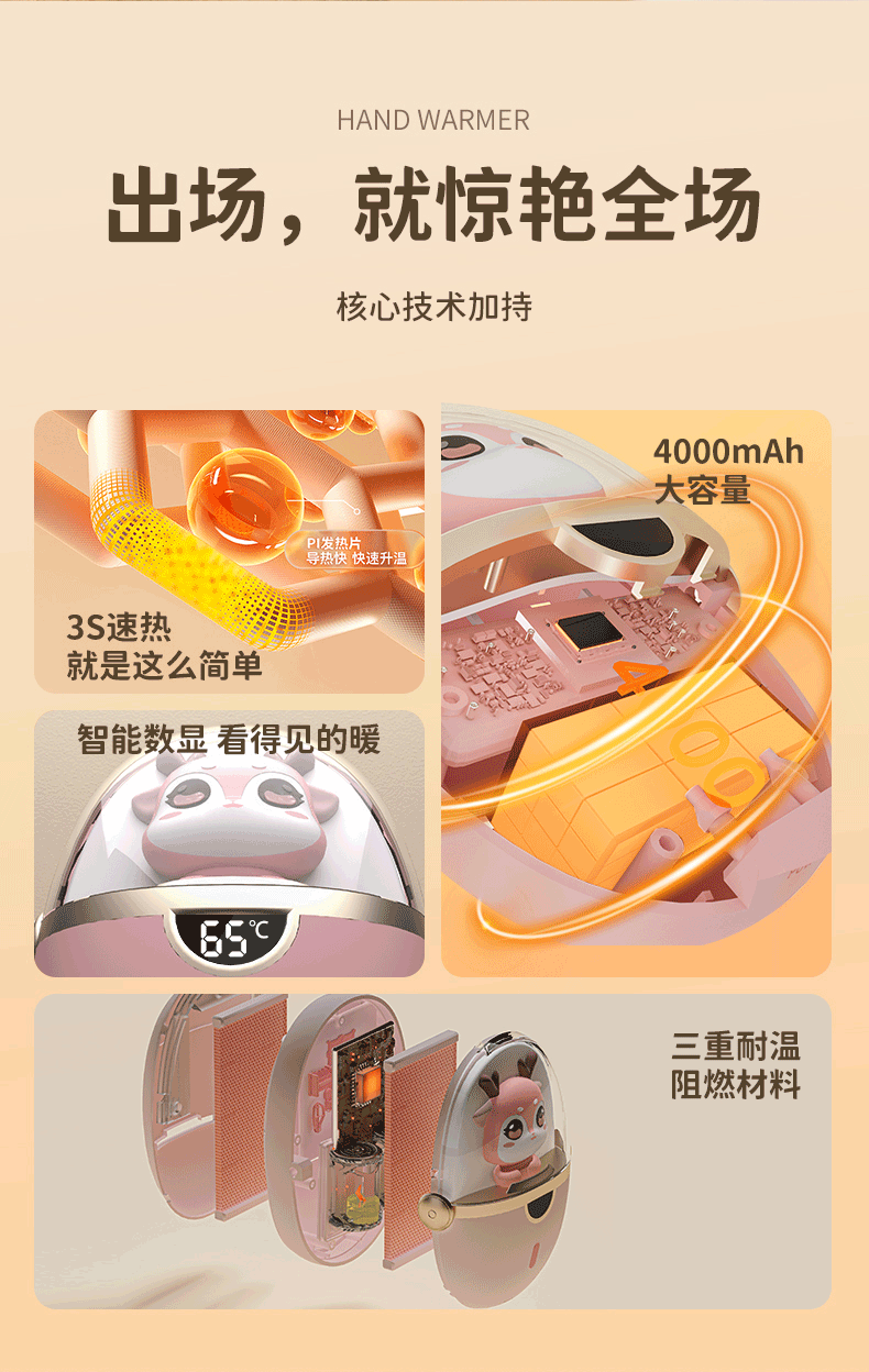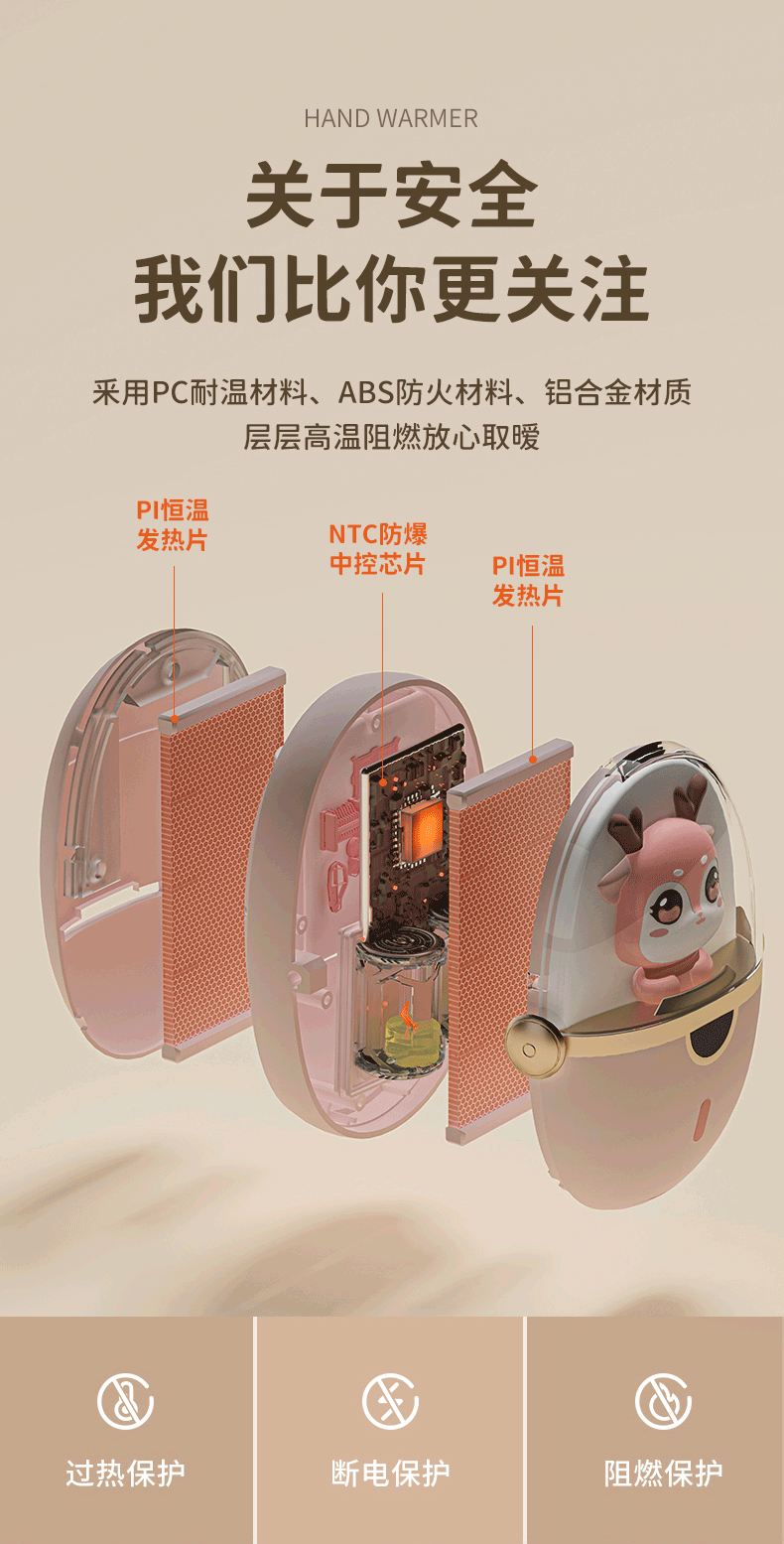 [3秒速热、便携多功能] 充电宝小夜灯多功能三用暖手宝