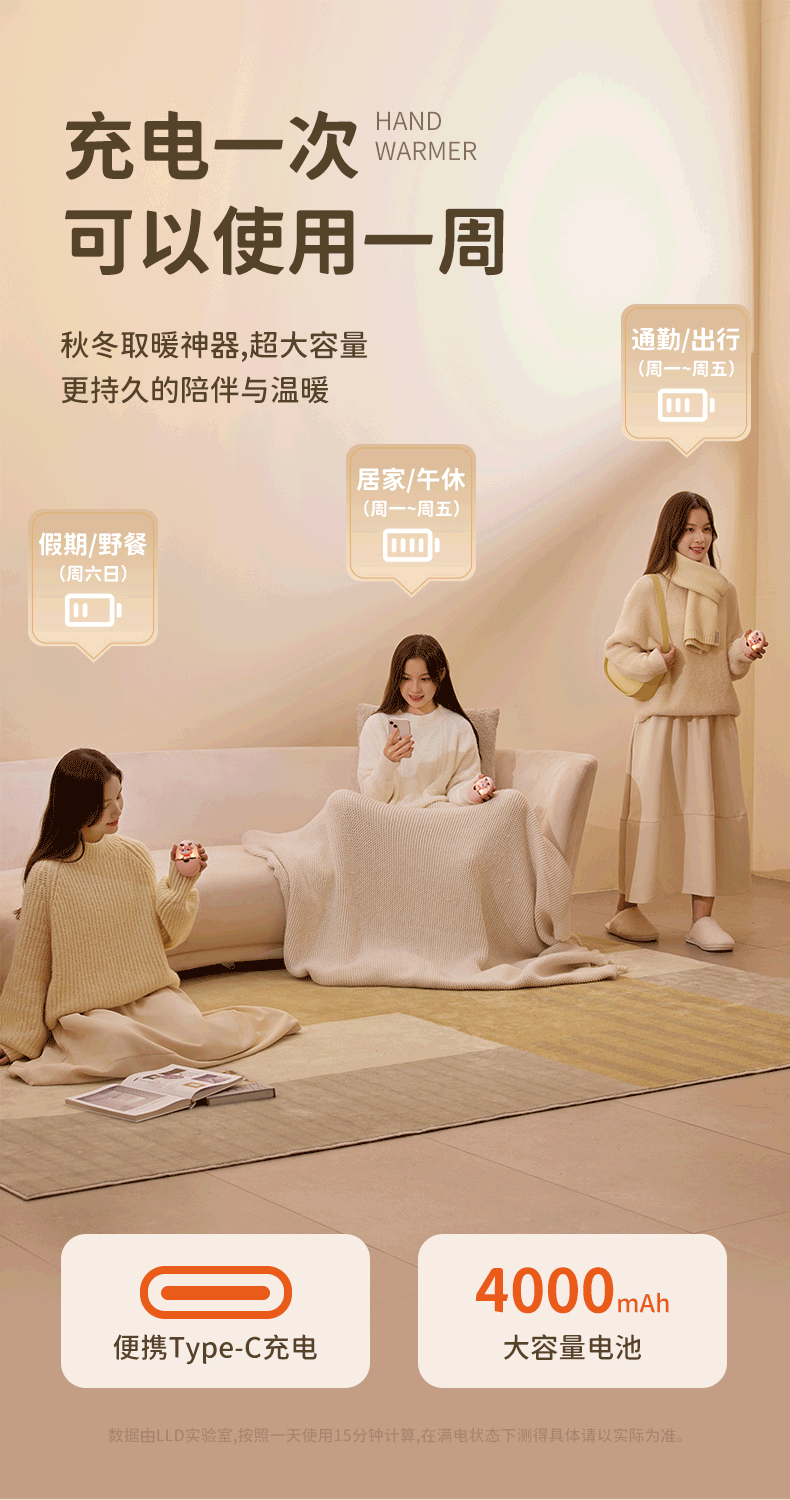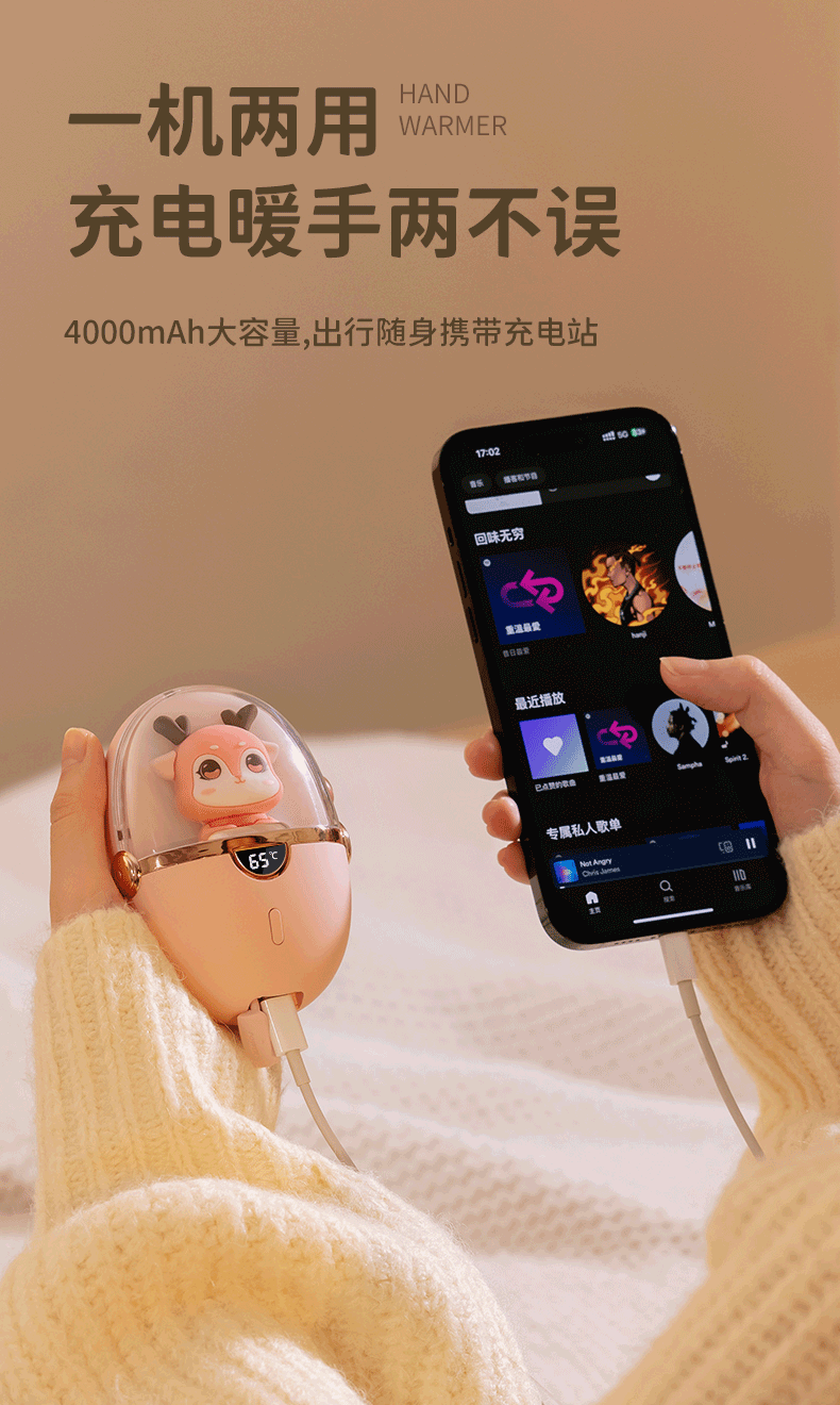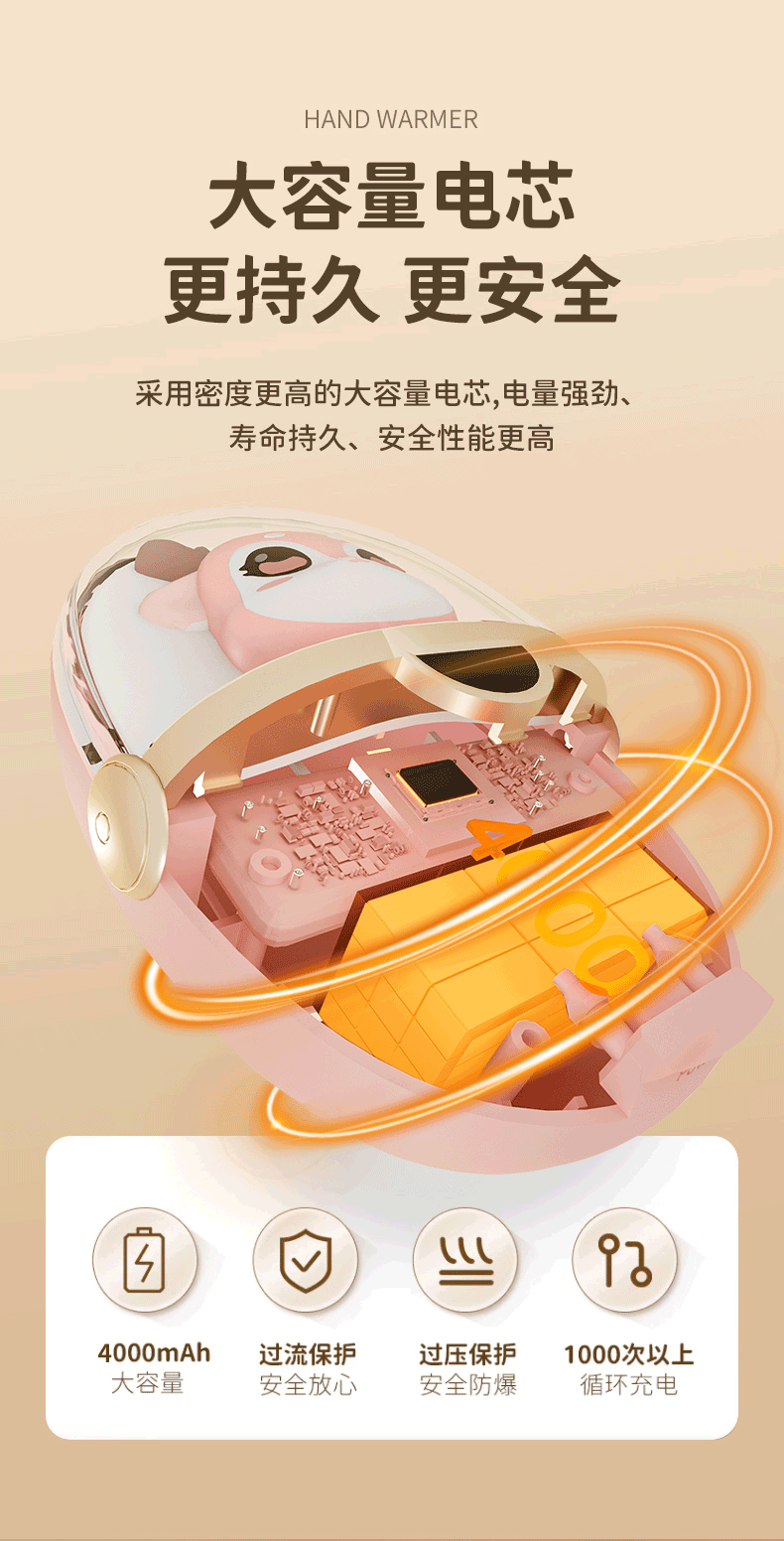 [3秒速热、便携多功能] 充电宝小夜灯多功能三用暖手宝