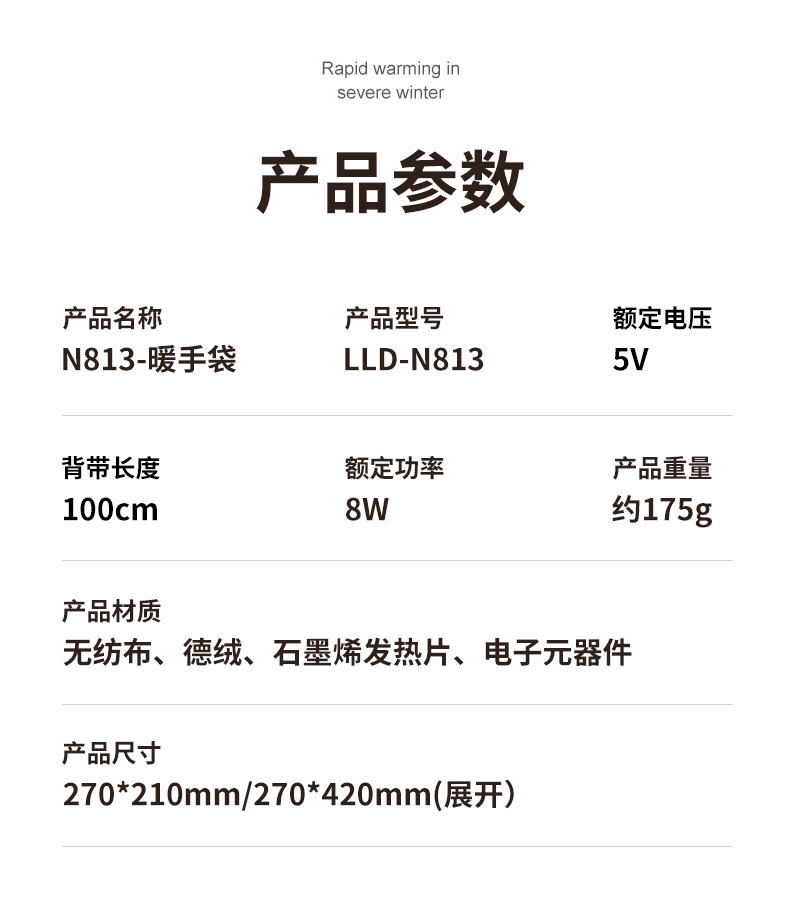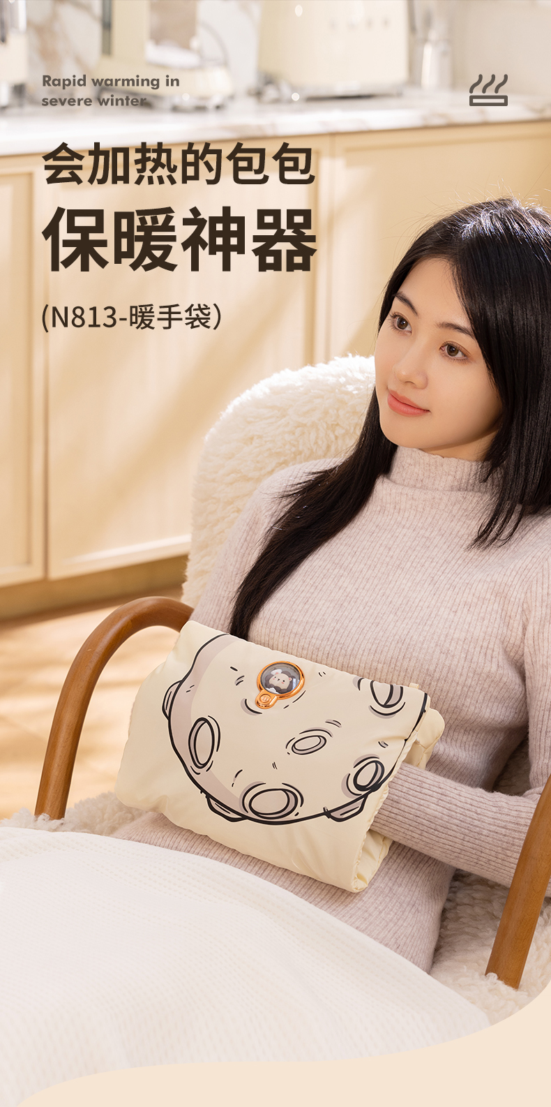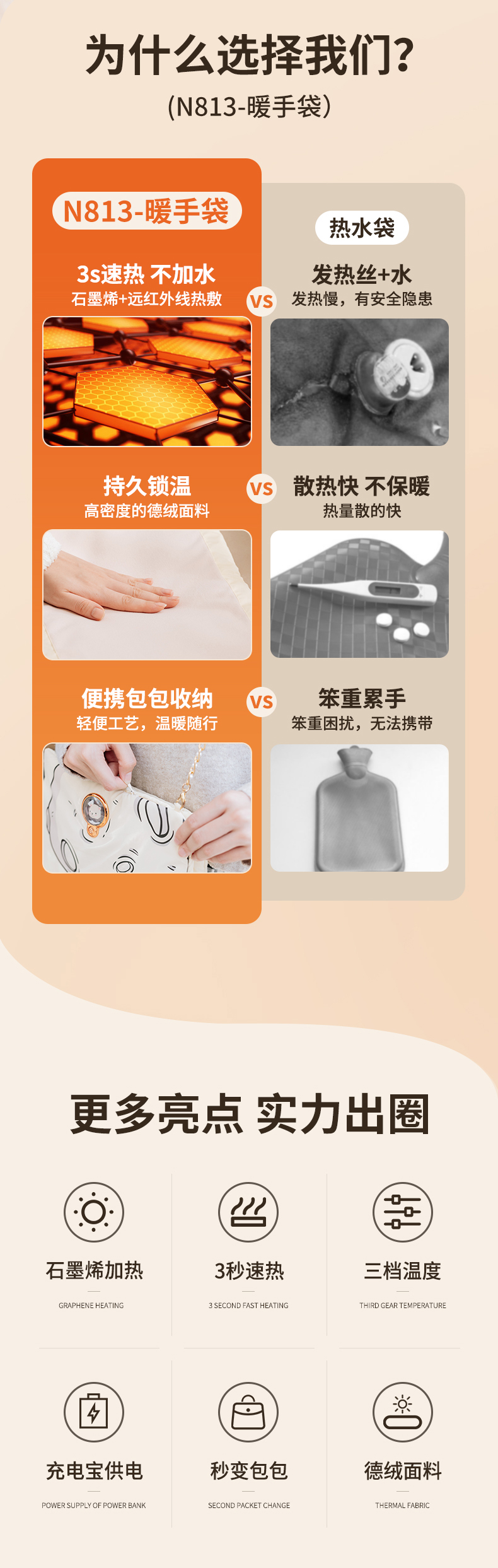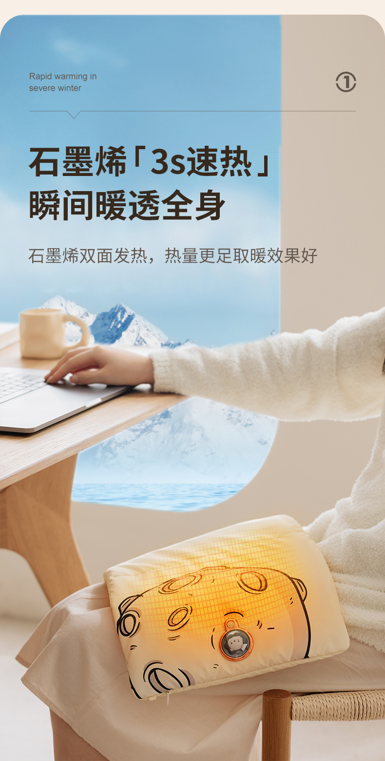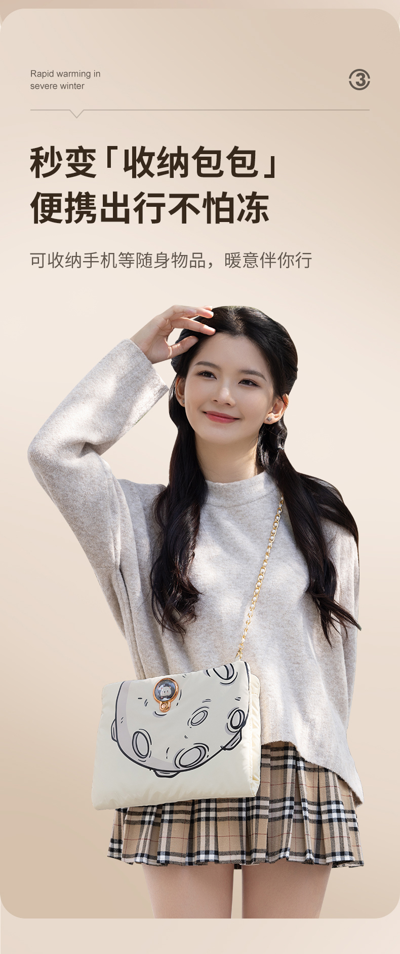 立减8元产品特性:石墨烯3秒速热,大面积取暖,三档温度,秒变包包,充电宝供电(请自备充电宝),德绒面料。