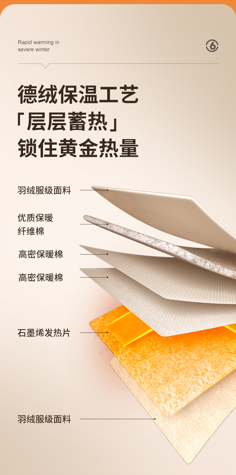 产品材质:无纺布、德绒、石墨烯发热片、电子元器件