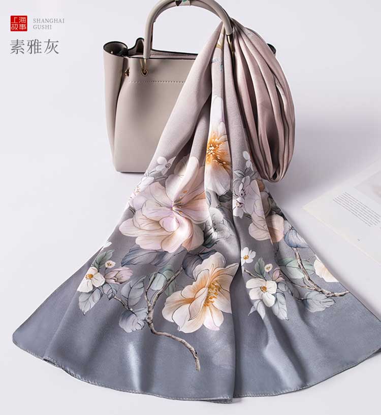 上海故事真丝丝巾-素雅灰
