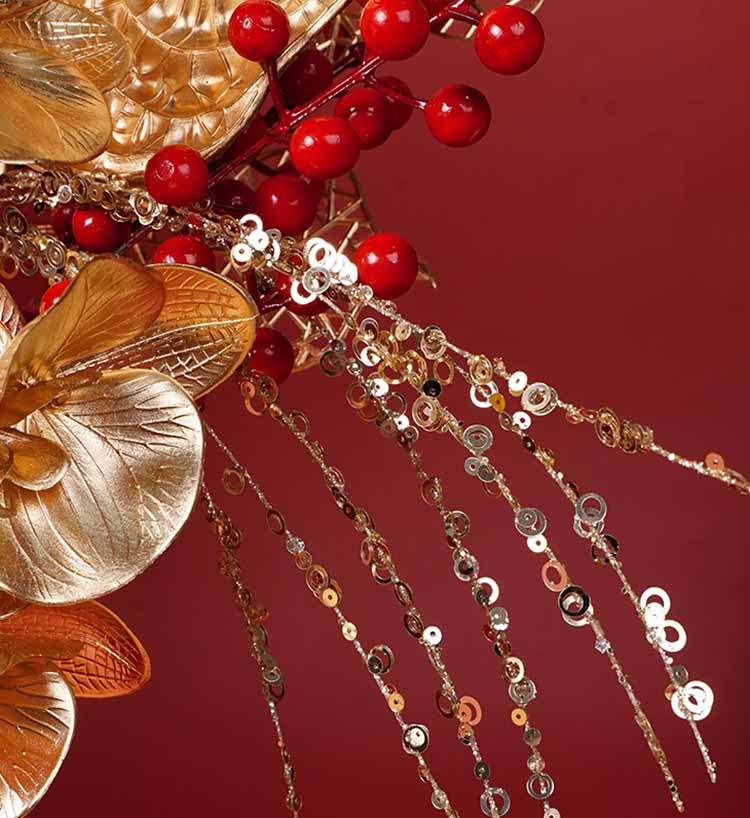 产品内容:金色蝴蝶兰-9头、7头网胡蝶兰、金色鹅掌、亮片闪粉插枝、金色蒲扇、金色马蹄莲、红色冬青、8头红桑果、单只金贵叶、金色凤尾、金色佛珠、金色三叉葫芦、金色花生叶、纸葫芦、马年吊卡一套、桶(18*20.5CM)