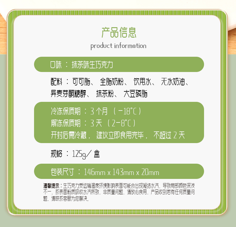 立减8元口味 : 抹茶味生巧克力