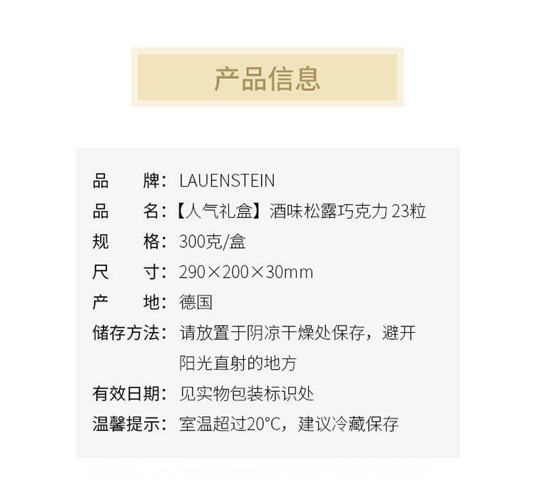首页 > 礼品 > LAUENSTEIN手工酒心松露豪华礼盒23粒
