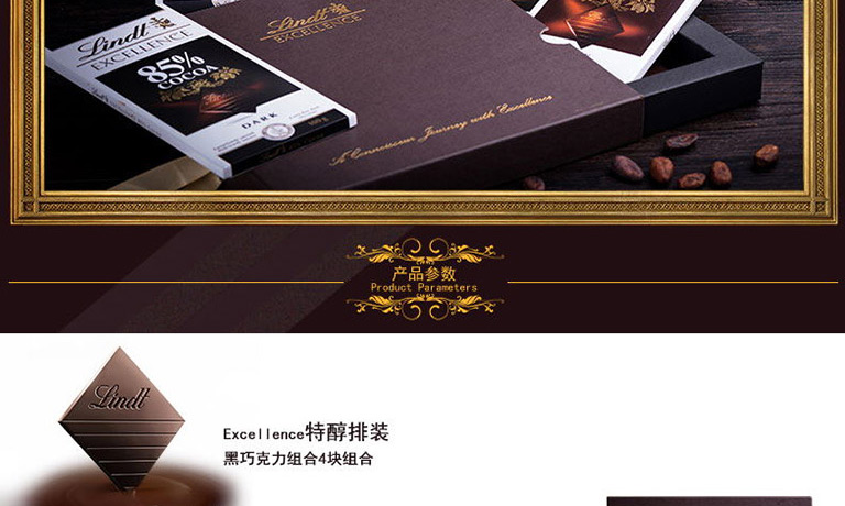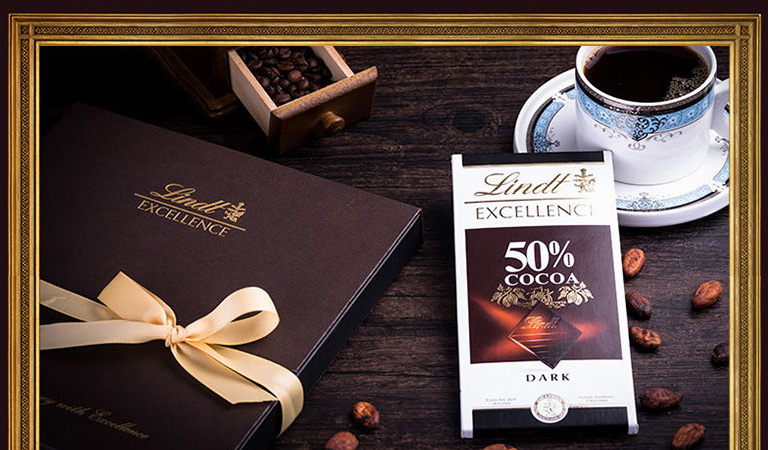 Lindt瑞士莲 特醇排装4片装咖啡色礼盒350g 法国进口