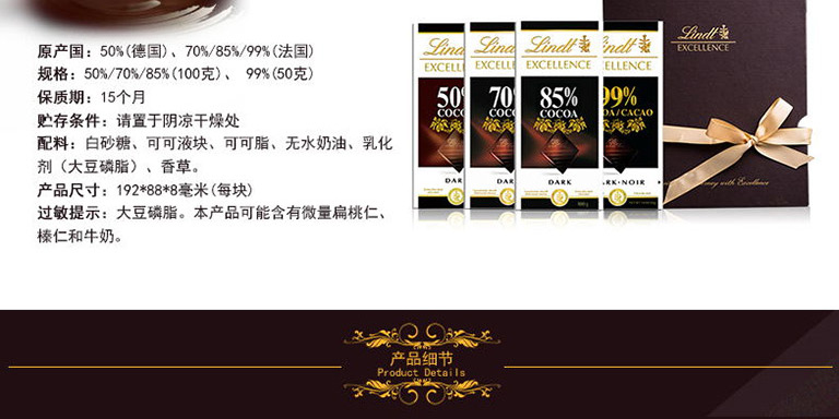 首页 > 礼品 >瑞士莲巧克力 > Lindt瑞士莲特醇排装黑巧克力4块装