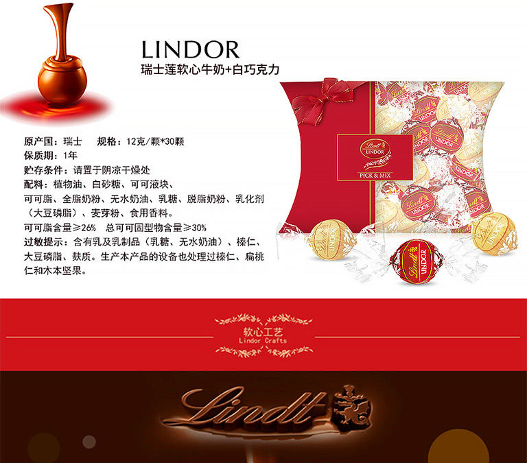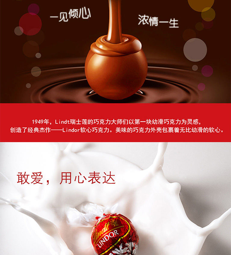 Lindt瑞士莲进口lindor软心巧克力30粒装苹果派礼盒(牛奶+白)