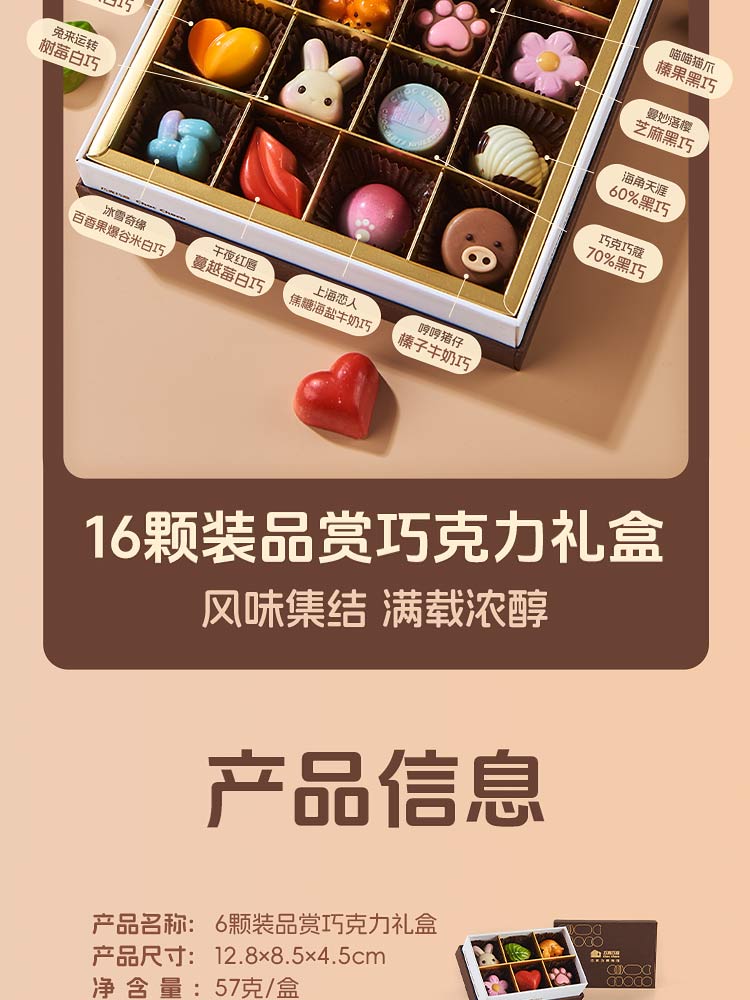 首页 > 礼品 >巧蔻巧克力 > 巧克巧蔻定制16粒装手工夹心巧克力