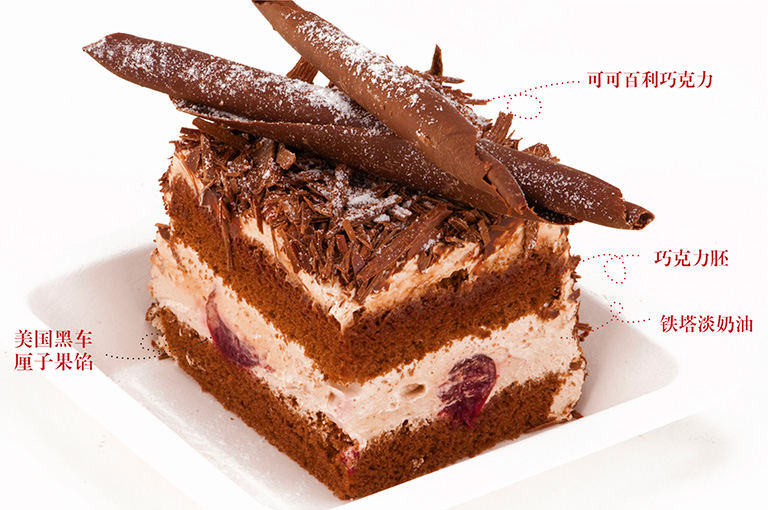 法国顶级可可百利巧克力、美国黑樱桃、法国铁塔淡奶油、法国白兰地