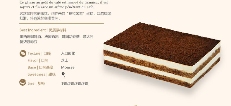 墨西哥咖啡酒,法国奶油,臻选白砂糖,意大利特浓咖啡豆