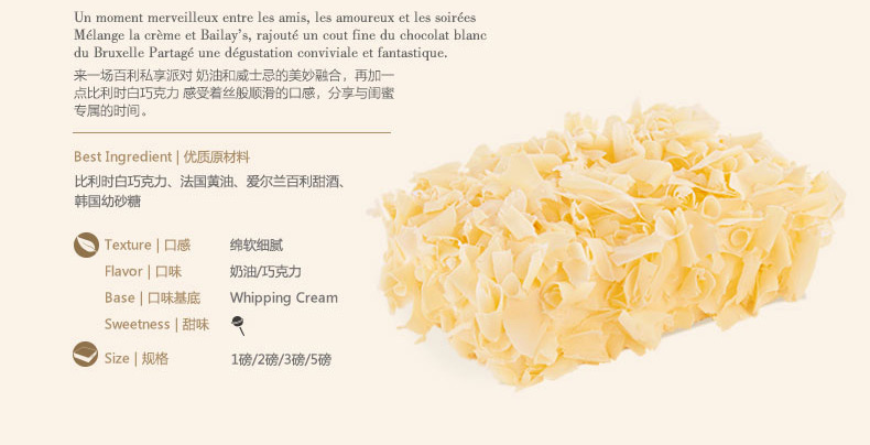 法国奶油,爱尔兰百利甜酒,臻选白砂糖,比利时白巧克力