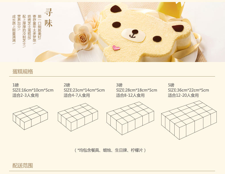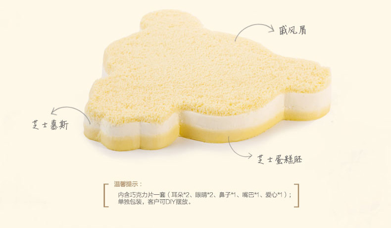 首页 > Mcake蛋糕 > 小熊动物造型芝士味生日儿童生日宴会蛋糕(2磅)