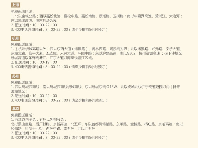 提交订单时您可以选择上午(8:30-12:00)、下午(12:00-18:00)、晚上(18:00-21:00)三个时段;如果对配送时间点有特别需求,您可以选择定时服务。特别提示:如果下单时间距离所选时段少于3小时,您所选时段无法满足的情况下,将尽量在您付款后3小时内送到。