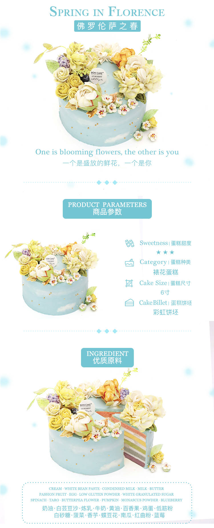 鲜花蛋糕都是配送当日新鲜材料制作而成,确保新鲜度,敬请放心订购!