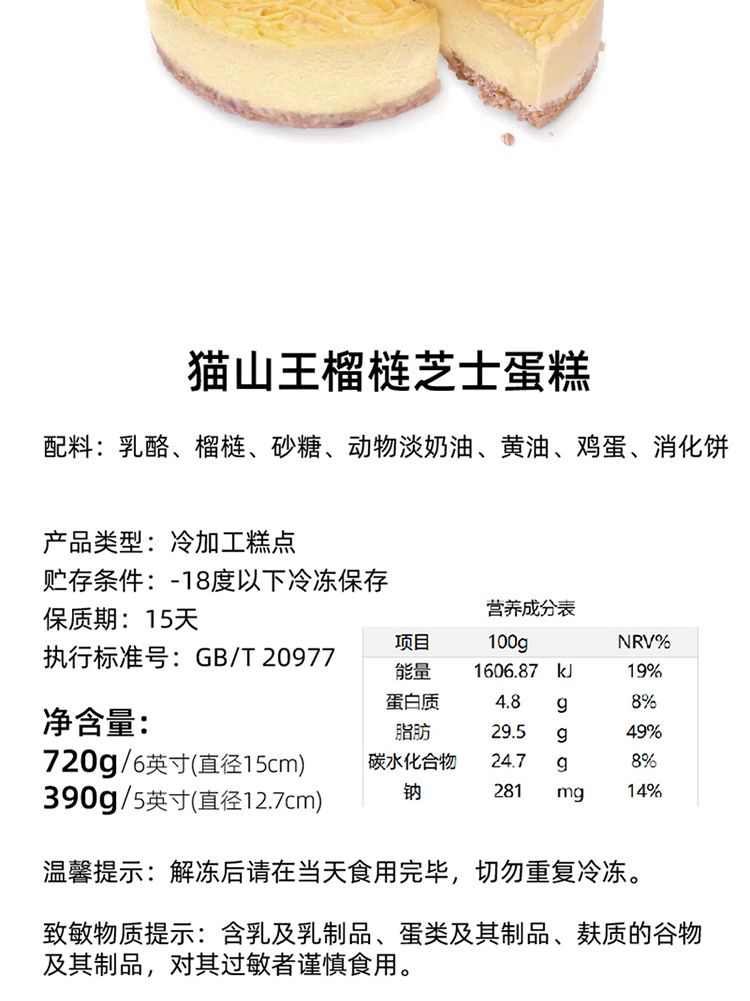 立减8元乳酪、雞蛋、消化餅乾、法國依斯妮發酵奶油、榴莲