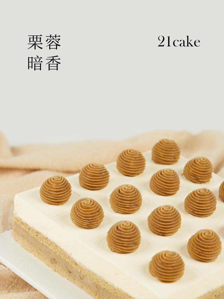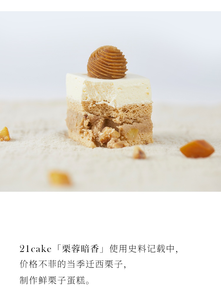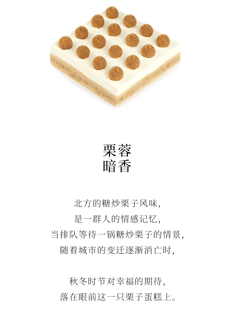 栗子烘烤的蛋糕坯,鲜栗蓉,点缀手工比利时黑巧克力豆